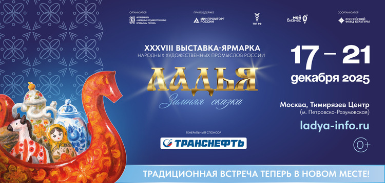 Очередная выставка-ярмарка народных художественных промыслов России «ЛАДЬЯ. Зимняя сказка-2025» пройдет с 17 по 21 декабря 2025 г. в выставочном комплексе «Тимирязев Центр» (