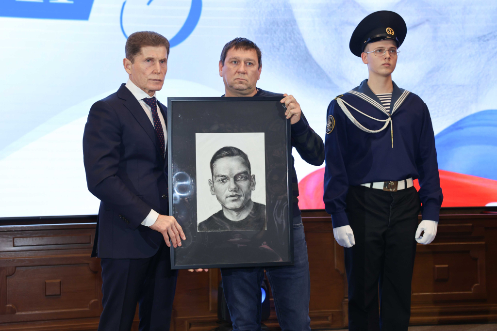 «Для приморцев это особая дата, так повелось с Хасанских событий. Когда звание Герой Советского Союза получили первыми жители Приморья, обороняя наши земли. Так было и в годы Великой Отечественной войны, когда сотни наших жителей были удостоены этого высокого звания. Так и сейчас – 22 приморца удостоены звания Героя России, 26 – Героя Приморья. Это те ребята, кто по зову сердца пошёл служить Отчизне, и когда потребовались их мужество, отвага, жизнь – беззаветно отдавали себя служению Отечеству. Для них долг превыше всего, и сейчас, чествуя героев, павших и живых, мы вспоминаем об их подвигах, их семьях, несущих боль утраты. Приморцы первыми встали на защиту русского народа в Приднестровье, на Донбассе. Когда враг вторгся в Курскую и Белгородскую области, первыми туда были переброшены морские пехотинцы 155-й гвардейской бригады морской пехоты, следом зашёл батальон “Тигр”, 83-я гвардейская десантно-штурмовая бригада, встав плечом к плечу друг к другу в тяжелейших боях. В общей сложности уже 3,5 года наши бойцы несут тяжкую ношу, бремя войны, а вместе с ними их семьи, жители Приморья, делая всё, чтобы приблизить победу», – отметил Олег Кожемяко.