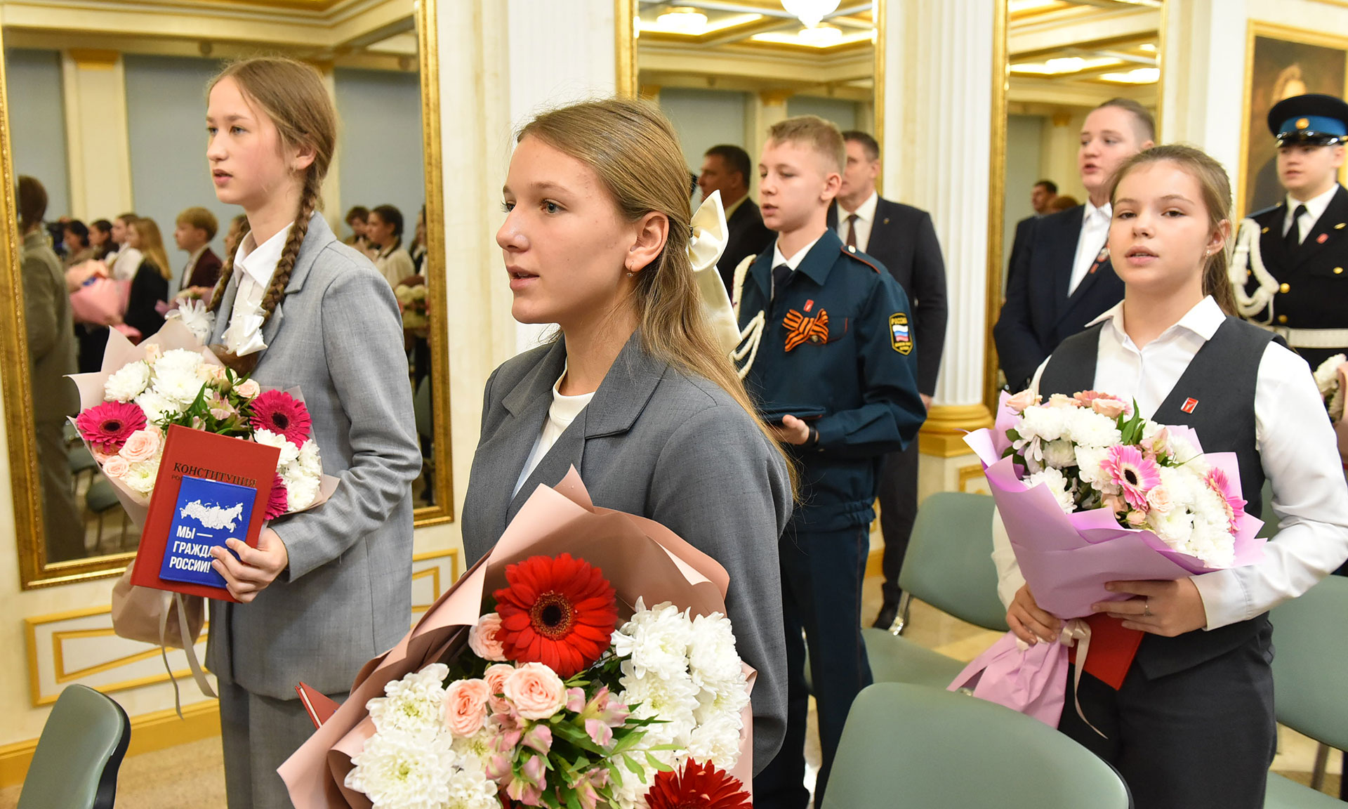 — Дорогие ребята! Я хочу вас поздравить с двойным праздником — с Днем Конституции и получением паспорта!