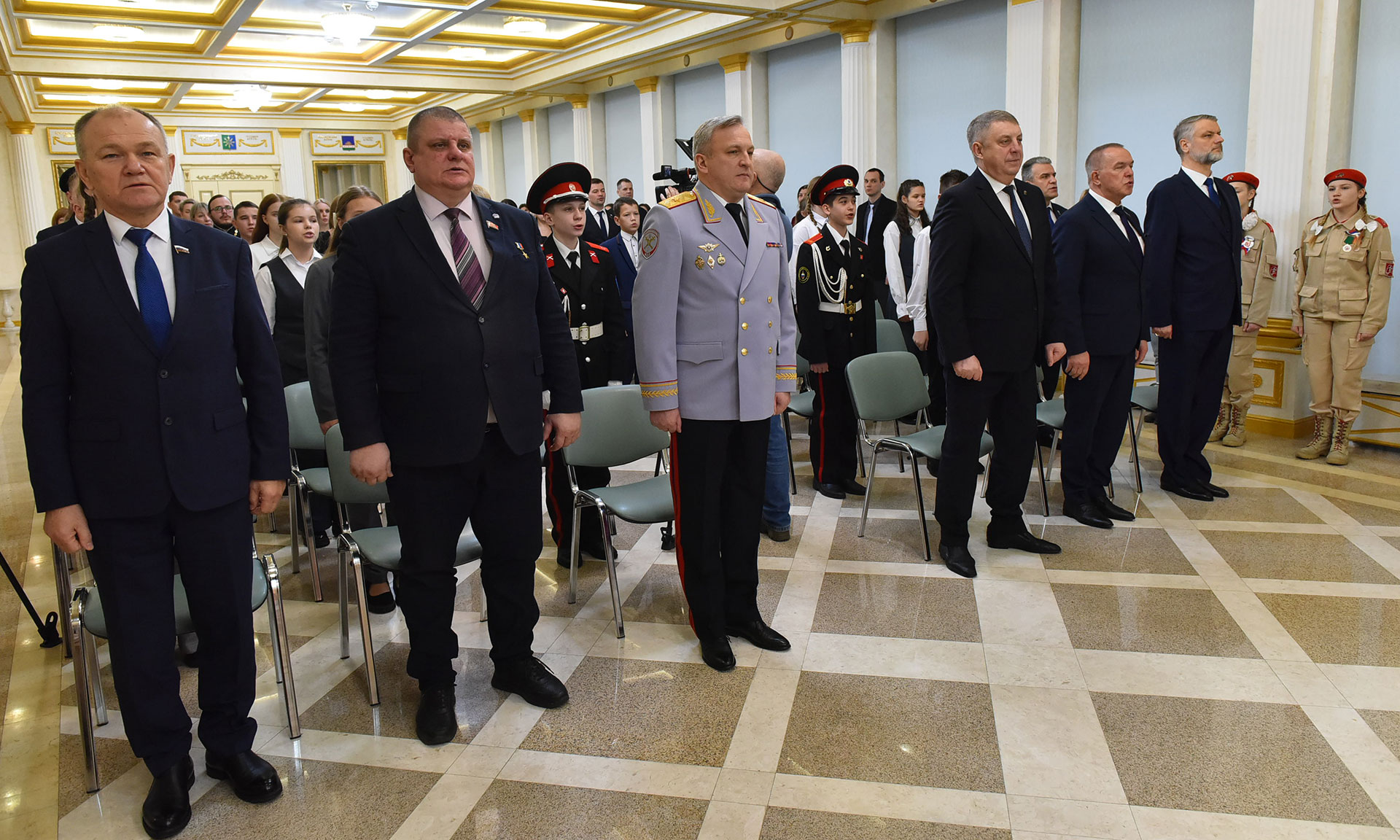 — Поздравляю всех с важным государственным праздником — Днем Конституции Российской Федерации. Конституция — высший нормативный правовой акт нашей страны, основной закон России. Для ребят, которые сегодня собрались в этом зале, сегодня особенный день.