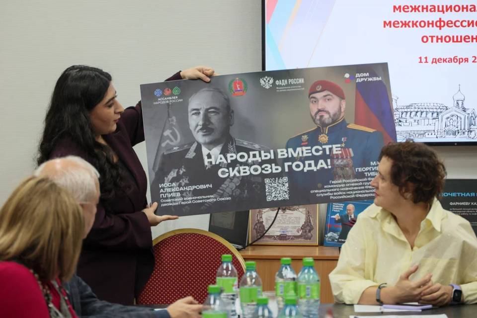 «Дом Дружбы» сотрудничает и с Ассамблеей народов России. В этом году проведено большое совместное мероприятие – межрегиональный форум «От Сталинграде к Великой Победе», когда школьники из Донбасса из рук ветерана ВОВ Александра Медкова получили паспорта в музее-панораме «Сталинградская битва». В рамках форума также была организована выставка «Народы вместе сквозь года», где представили портреты героев ВОВ и СВО разных национальностей.