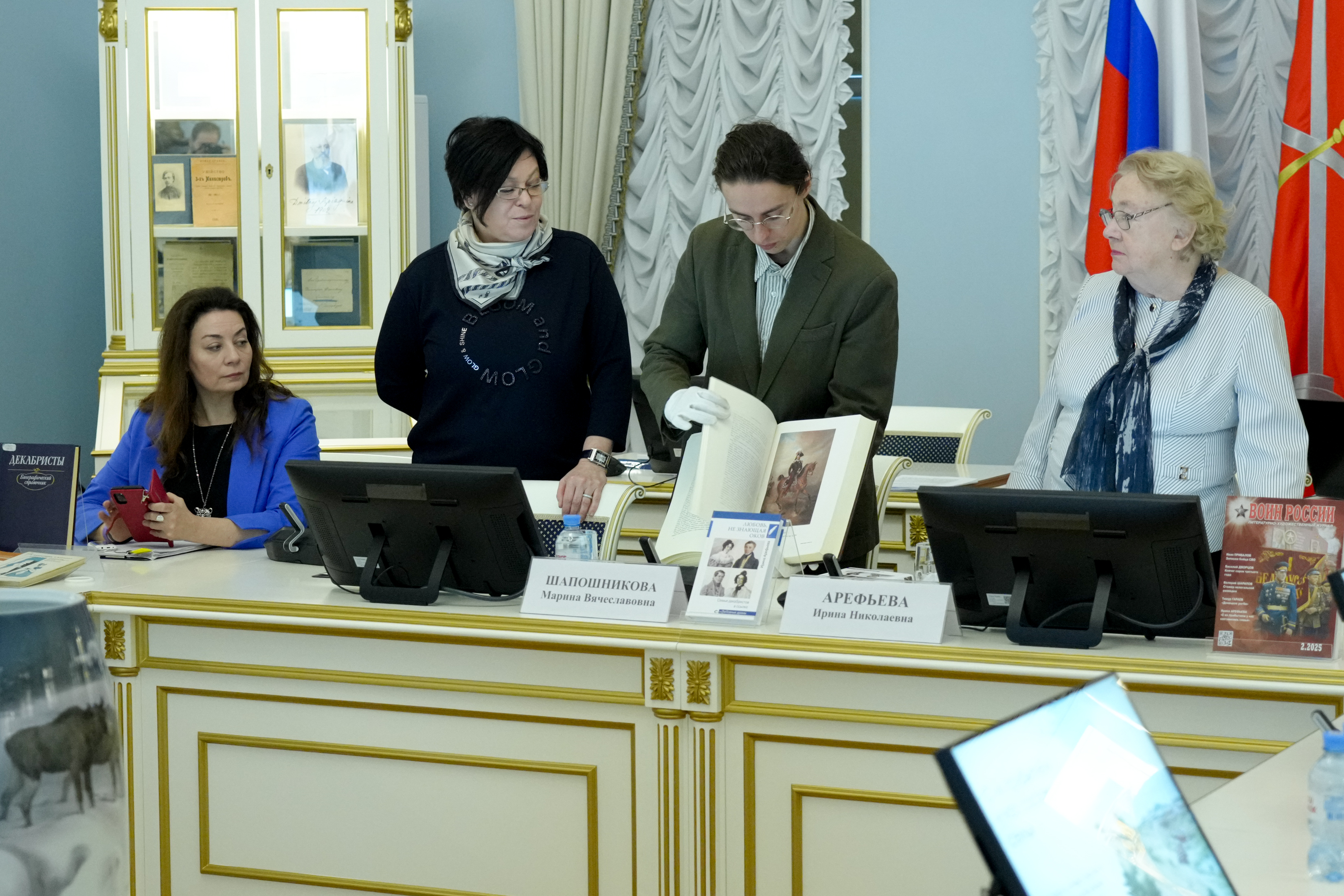 Главный хранитель Мариинского дворца Марина Шапошникова сообщила гостям о возможности получения доступа к обширному книжному фонду библиотеки учреждения по предварительной записи, что открывает широкие возможности для исследователей и всех желающих углубиться в исторические и культурные знания.