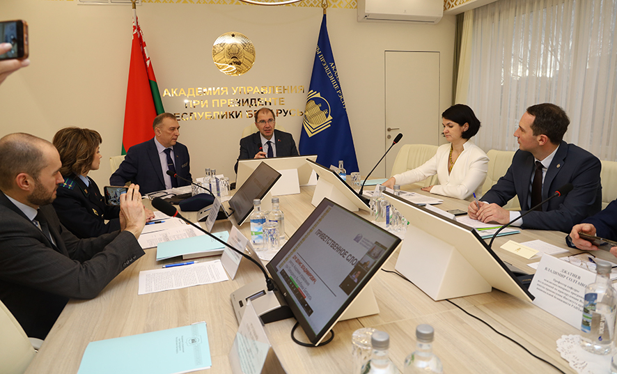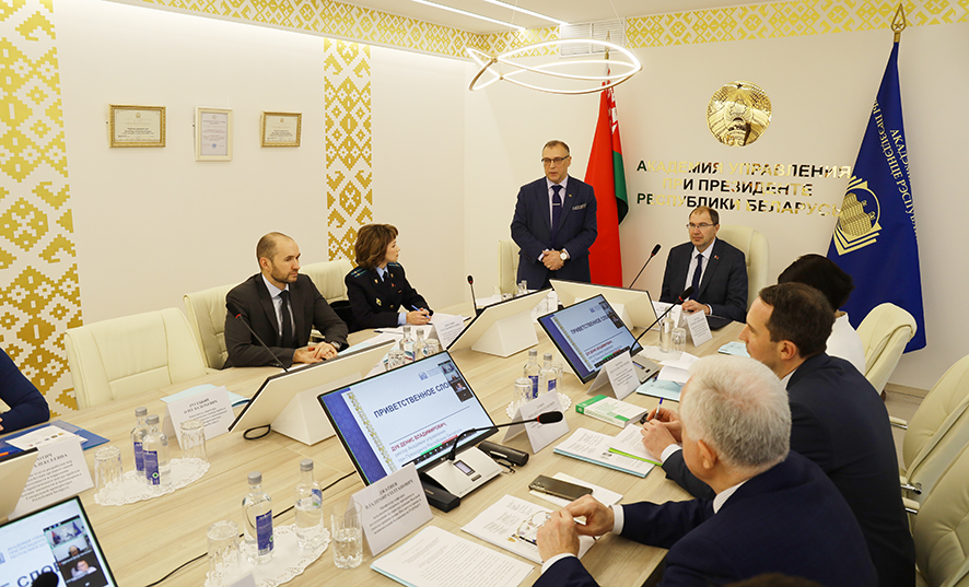 К участникам секционных заседаний со вступительным словом обратились ректор Академии управления при Президенте Республики Беларусь Денис Дук, директор Научно-практического центра проблем укрепления законности и правопорядка Генеральной прокуратуры Республики Беларусь Игорь Мороз и директор Института истории Национальной академии наук Беларуси Вадим Лакиза.