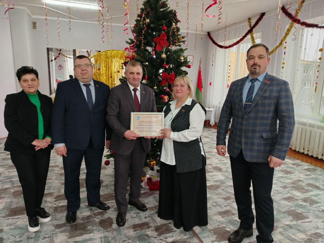 В канун Нового года в рамках акции «Профсоюзы – детям» социально-педагогический центр Пинского района в г.п. Логишин принял гостей. Председатель Брестской областной профсоюзной организации работников АПК Александр Солоневич и глава районной организации профсоюза работников АПК Александр Богдан передали учреждению денежный сертификат на покупку стирально-сушильной машины.