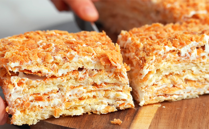 Правильный Наполеон отличается контрастом текстур: коржи обязательно должны хрустеть, а крем быть нежным. В домашней практике торт часто выходит чрезмерно мягким — покажем, как приготовить его необыкновенно вкусным и хрустящим, коржи не потеряют структуру даже после пропитки.