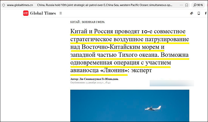 Позиция китайских СМИ: идёт совместная работа союзников, полёт нормальный… Скриншот: интернет-сайт globaltimes.cn