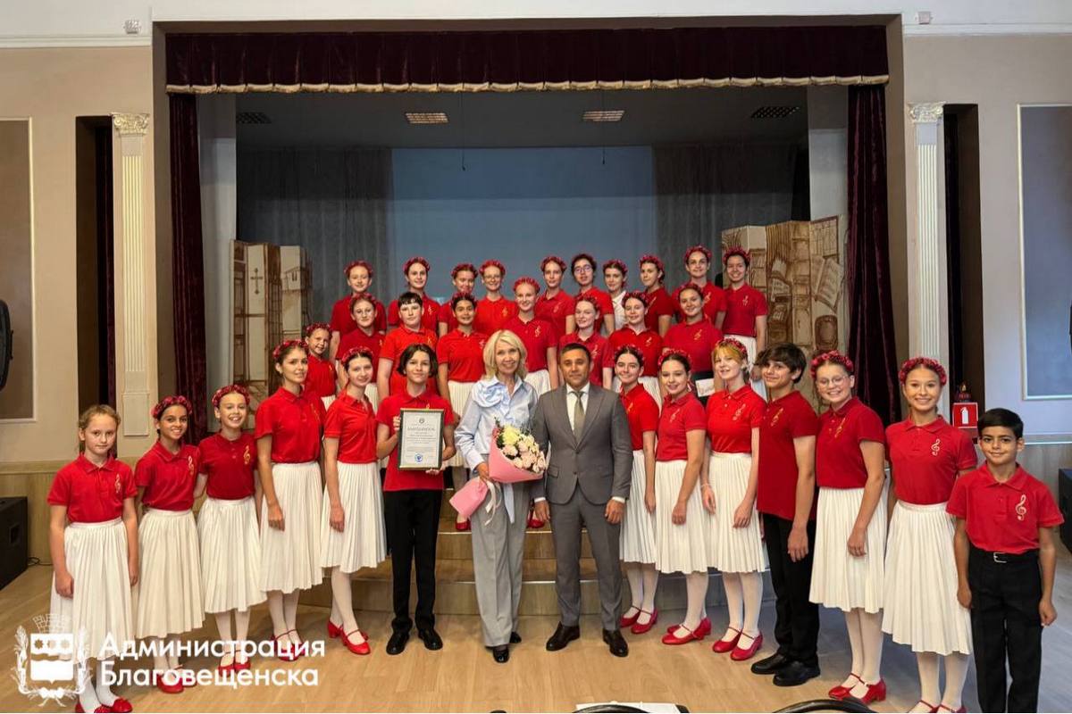 По поручению мэра Олега Имамеева двум творческим коллективам Благовещенска выделили по пять миллионов рублей. За достойное представление страны на международной культурной арене поддержку из городского бюджета получили заслуженные коллективы России — образцовый академический хор «Детство» и образцовый хореографический ансамбль «Ровесники».