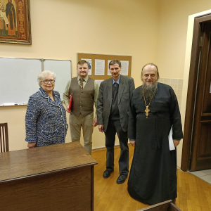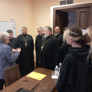 По прибытии в Минск утром 8 декабря Е.Ю. Гуськова была тепло принята ректором МинДА архимандритом Афанасием (Соколовым). Также гостья успела ознакомиться со структурой книжного собрания КСиБ, в котором представлены и ее собственные публикации.