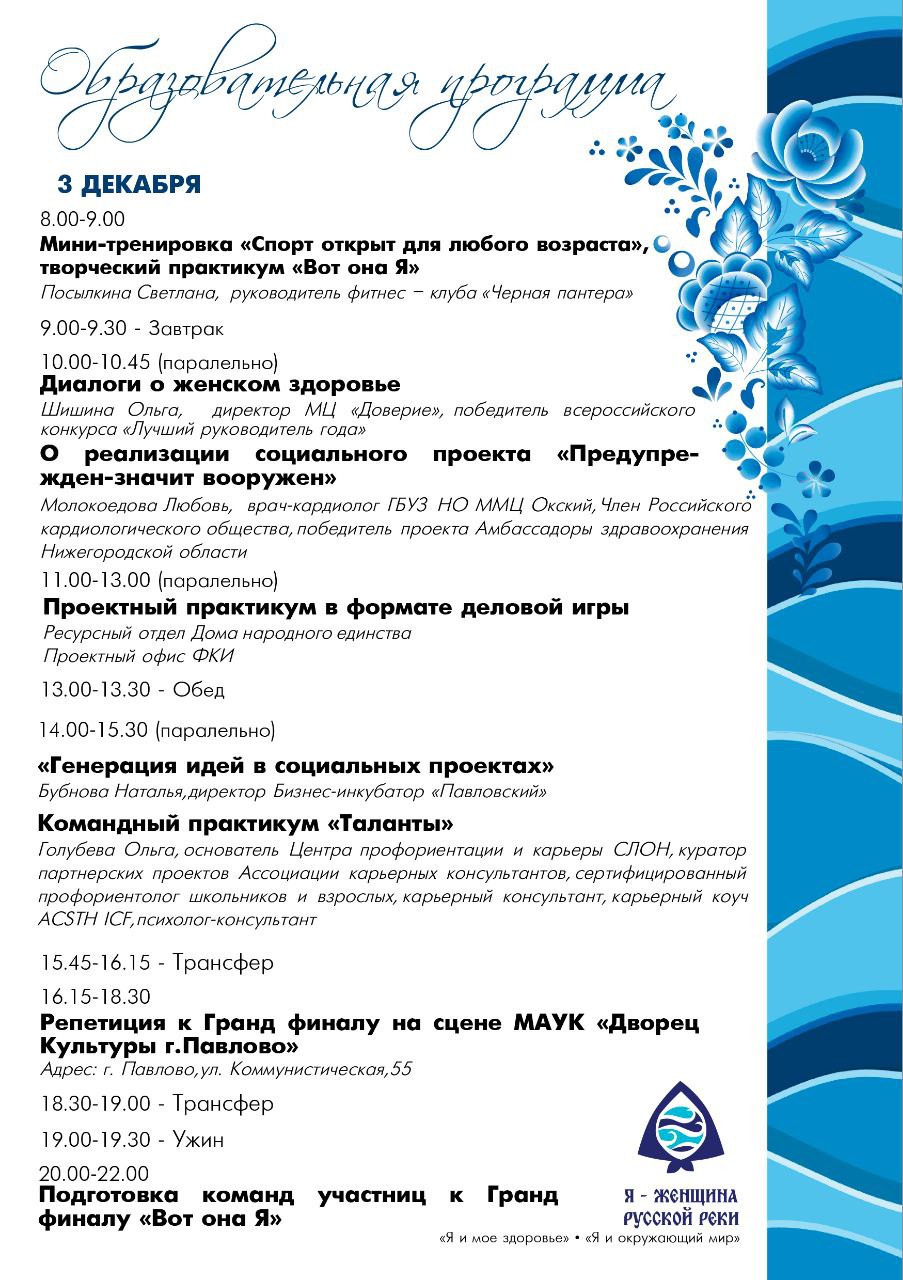 С 1 по 5 декабря прошел выездной образовательный интенсив «Сила женщины» регионального образовательного форума «Я – женщина Русской реки»*. Проект реализуется Нижегородским советом женщин (региональное отделение Союза женщин России) в период сентября – декабря 2025 года при поддержке Правительства Нижегородской области на средства гранта в форме субсидии СО НКО.