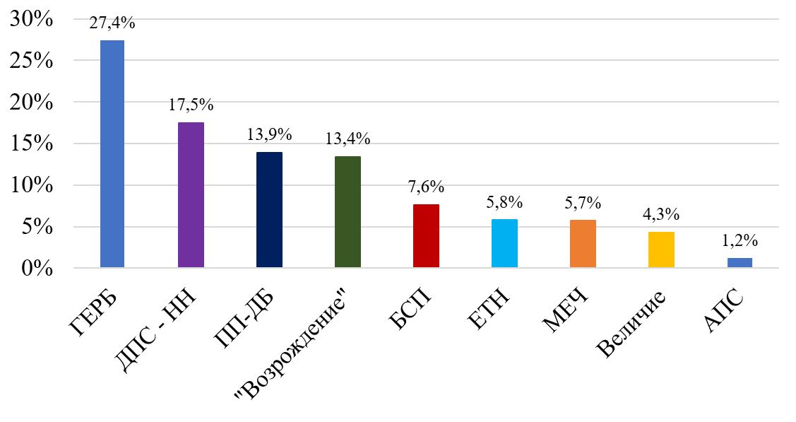 Поскольку БСП уже не могла выступить лидером оппозиционных настроений, на эту роль нашлись другие кандидаты. В 2021 г. ГЕРБ, ранее не знавшая поражений, дважды проиграла выборы (в июле и ноябре 2021 г.). И что характерно — разным партиям: в июле первое место заняла ЕТН («Есть такой народ»), в ноябре — ПП («Продолжаем перемены»). Ни одной из них не суждено было закрепить успех: ЕТН не смогла сформировать правительство; кабинет, созданный ПП, продержался всего семь месяцев.