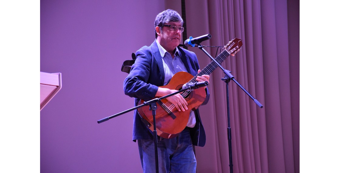 В завершение вечера перед гостями выступил бард, сотрудник Дома Виктор Леонидов, который исполнил посвященную русской эмиграции песню «Я улетаю из Парижа».