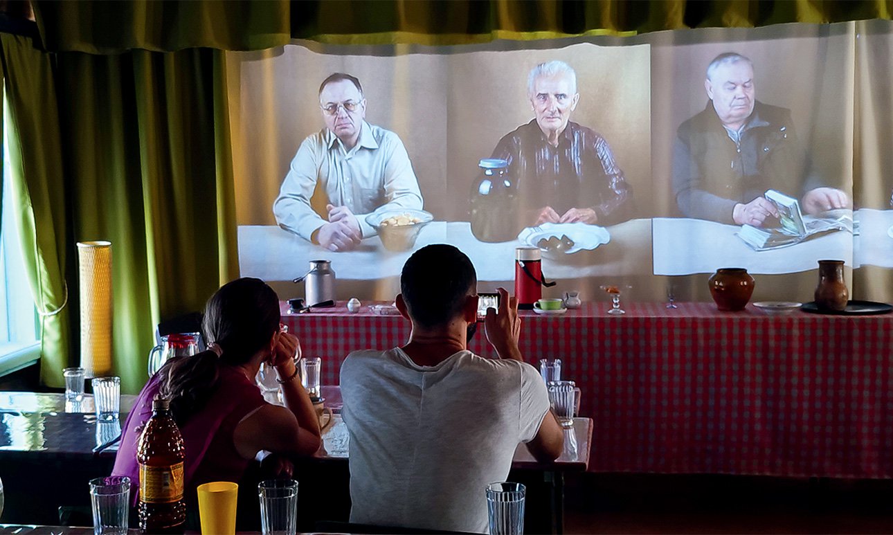 Спектакль на стыке документального театра и видео-арта приглашает зрителей к «совместной трапезе» с героями — мужчинами от 50 до 93 лет, живущими в Охотинском поселении Мышкинского района. Расположившись за накрытыми в избе столами, зрители слушают деревенских мужчин, повествующих с экрана о своей «жизни, мечтаниях и страхах».