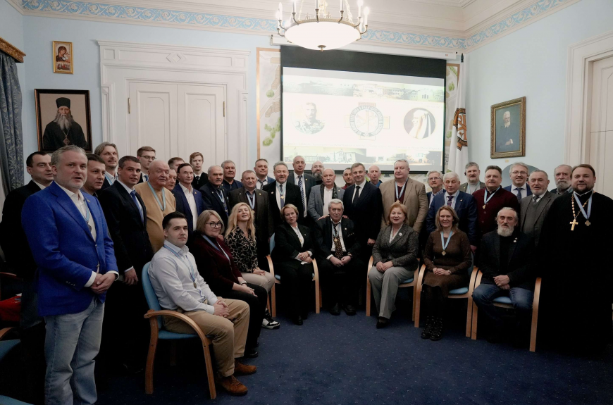 С приветствием и рассказом о современной деятельности ИППО выступил член Совета, руководитель научной секции Сергей Житенёв. Выступающий передал слова благодарности и пожелания дальнейшей успешной работы отделению от Председателя ИППО Сергея Степашина, и напомнил, что 2025-й год решением Совета был посвящён 120-летию трагической кончины Великого князя Сергия Александровича, и в течение всего года в местных и региональных отделениях проводились мероприятия по увековечению его памяти. В частности, 17 февраля 2025 года, когда отмечалось это событие, большая делегация членов ИППО посетила Новоспасский монастырь, где была совершена панихида. В тот же день были проведены третьи Сергиевские чтения, посвящённые Великому князю. В феврале-марте почти во всех региональных и зарубежных отделениях и представительствах прошли памятные мероприятия в виде собраний, лекций, выставок, в них принимала участие и молодежь. В выпуске «Православного Палестинского сборника» №124 опубликованы материалы о деятельности великого князя как первого Председателя ИППО и делах Общества в связи с упомянутой датой.
