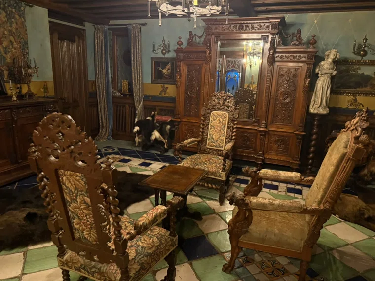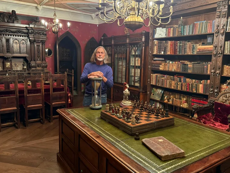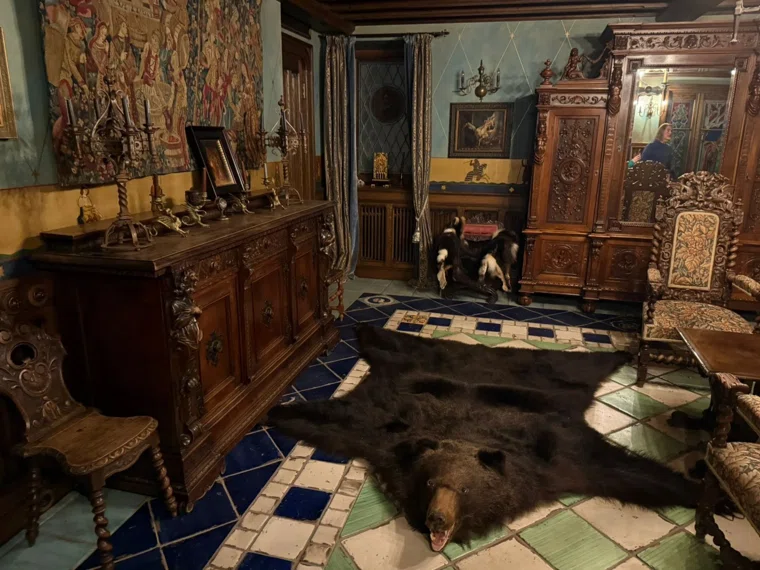 «Еще одна достопримечательность моей квартиры — стол Наполеона, — продолжает Сафронов. — Он очень тяжелый. Весит несколько центнеров. Стол очень удачно вписался в мой интерьер. Но больше мне дороги шахматы, которые на нем располагаются. Их мне подарил мой близкий друг Вилли Токарев. Вилли уже, к сожалению, с нами нет рядом, а шахматы стоят. Ему их подарили заключенные в одной из колонии, где он выступал. Все фигуры уникальные, сделаны в единичном экземпляре. Вилли мне их передарил. В моей квартире очень много подарков от друзей. Например, шкуры медведей, видите? Одну из них мне подарил в свое время Аман Тулеев, другую — Василий Лановой. Есть мяч, которым наши забили пенальти испанцам, когда в России проходил чемпионат мира — 2018. Его мне подарил тренер нашей сборной Станислав Черчесов».