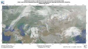 Сегодня в зону влияния мощного циклона попадут южные районы Туруханского района Красноярского края и Эвенкийского муниципального района, где ожидается небольшой, местами умеренный снег. Яркие плотные облачные поля циклона и его фронтальных разделов, смещающихся на восток, прослеживаются по данным дистанционного зондирования. Днем 12 числа в северных районах местами сохранится до -35°С, в Эвенкии до -40°С. С приближением теплого фронта и углублением приземной ложбины в зону интенсивных снегопадов попадают и северные районы центральной части Красноярского края. Смена воздушных масс увеличит здесь силу ветра до 13-18 м/с.