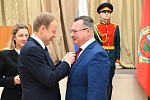 Сегодня состоялась церемония вручения государственных и региональных наград Губернатором Алтайского края Виктором Томенко. Руководитель Информационного центра Избирательной комиссии Алтайского края Юрий Владимирович Сидоров был удостоен почетного звания «Заслуженный работник избирательной системы Российской Федерации».