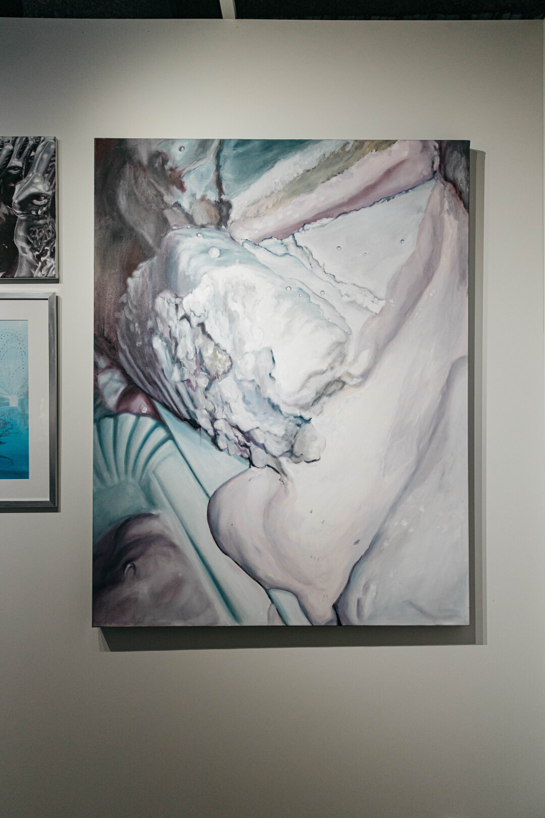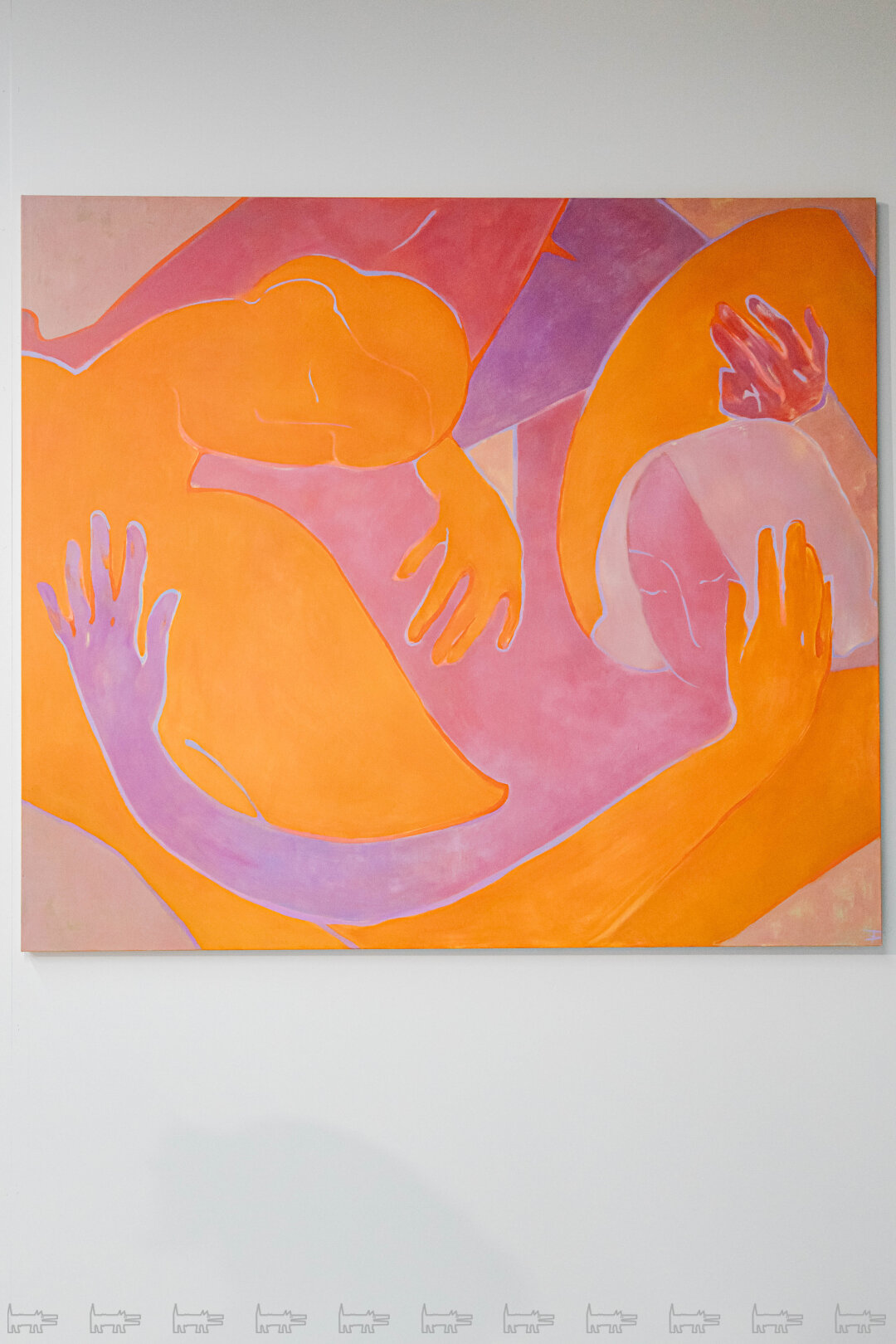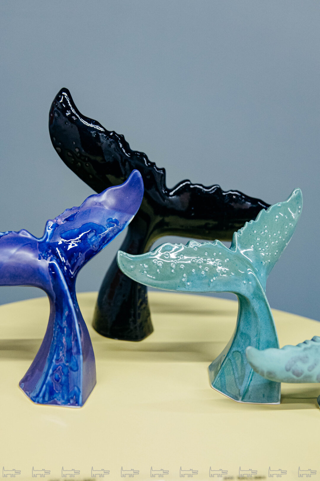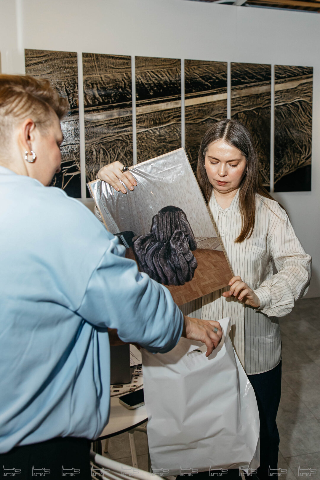 Это наше первое участие в таком крупном маркете и очень важный шаг. Мы хотим дарить людям радость, и, судя по интересу к стенду, покупкам и теплым отзывам, эта задача выполнена. Продажи идут хорошо, особенно востребована живопись Кати Богданковой, в том числе крупноформатные полотна. Впервые мы представили Александра Хромых — монументалиста с серией «Китовые хвосты», эти работы тоже успешно продаются. Концепция стенда — «лиминальное море», пространство переходов и перемен, где центральной темой стала любовь как состояние нестабильности. Эта идея органично перекликается с нашим расположением на берегу Финского залива и общей морской линией экспозиции.