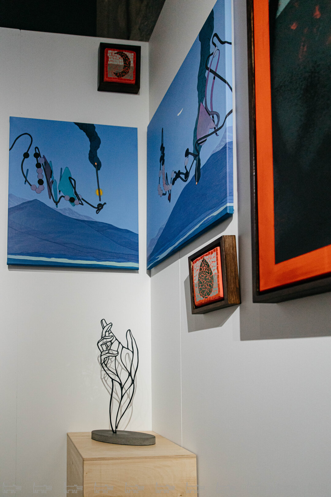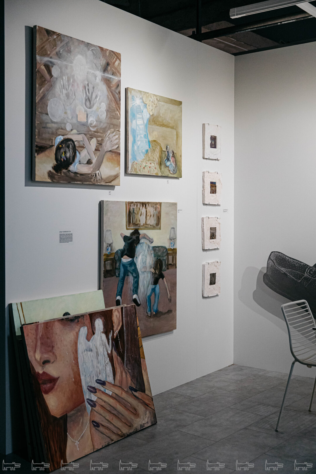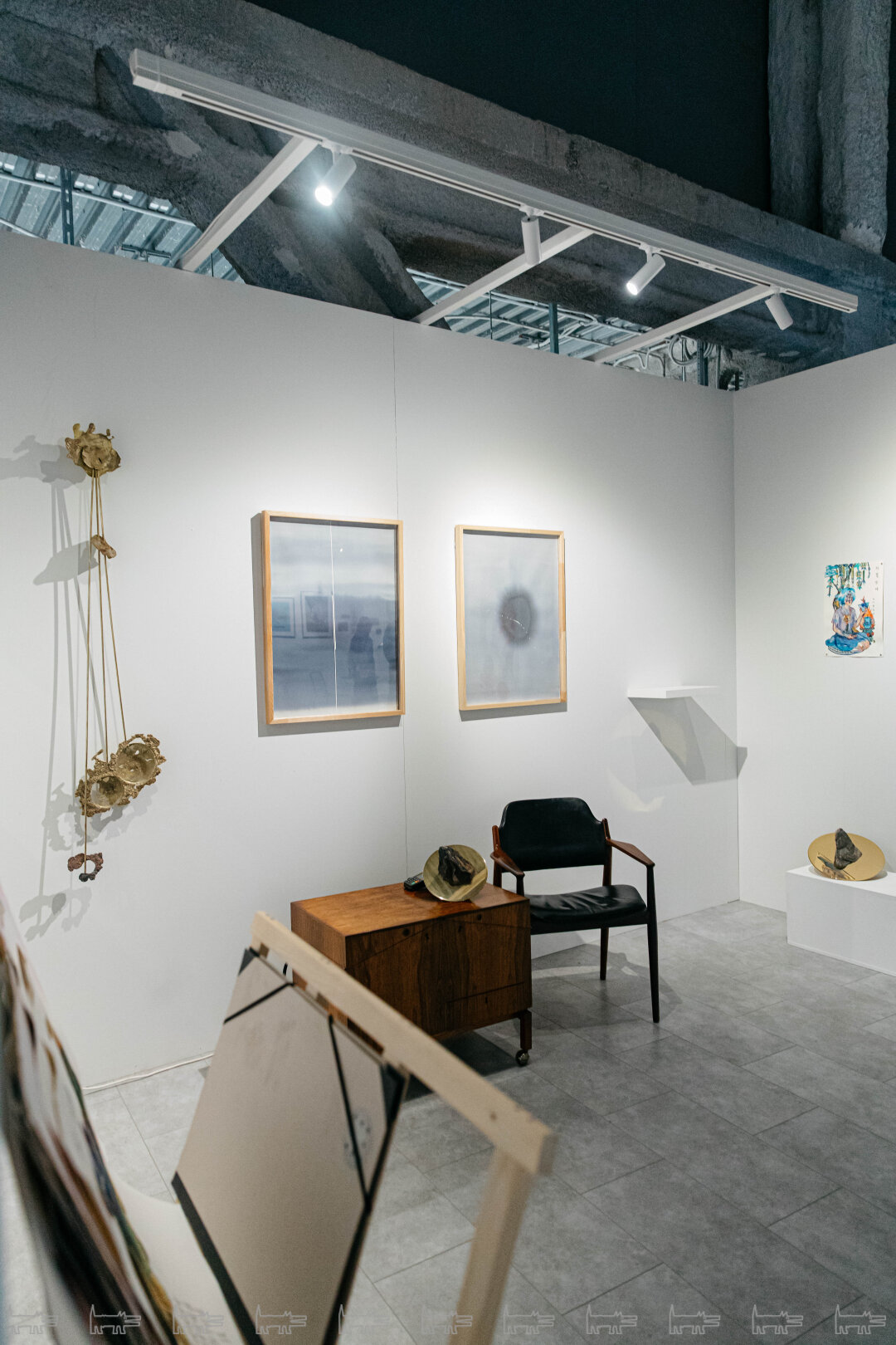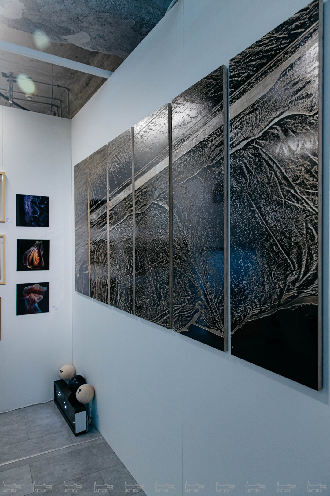 Концептуальное пространство искусства и дизайна Евгении Сероусовой MAISON25 представило стенд «Порог. Между». Через работы Алексея Громова, Елены Мухаметовой, Саши Рощина и Анастасии Иваненковой стенд говорит о дуальности и столкновении материального и духовного, статики и динамики.