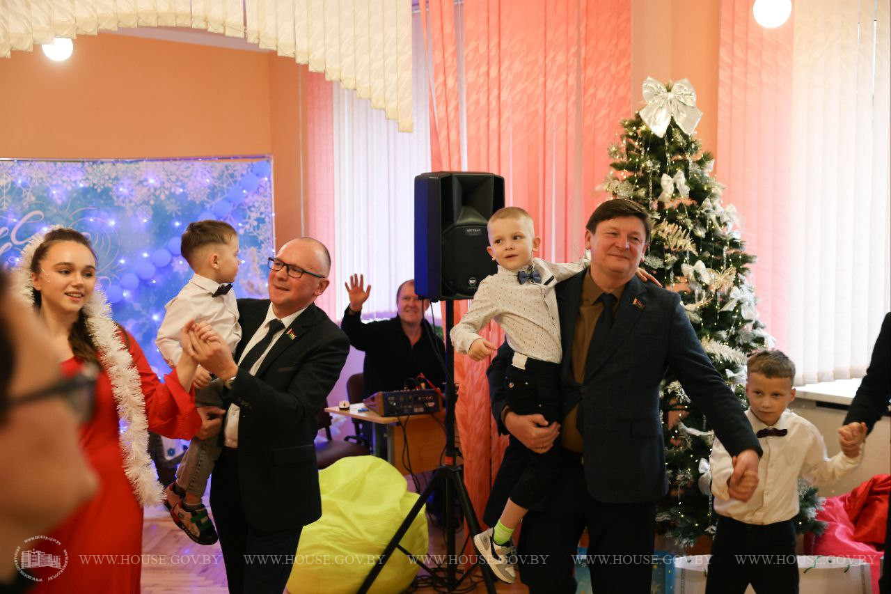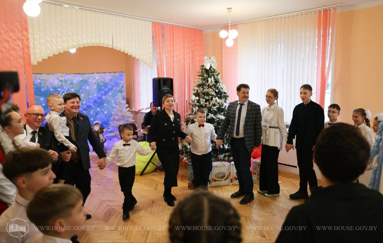 Сегодня парламентарии от души поздравили каждого юного белоруса, сказали добрые слова, а также приняли участие в новогоднем представлении.