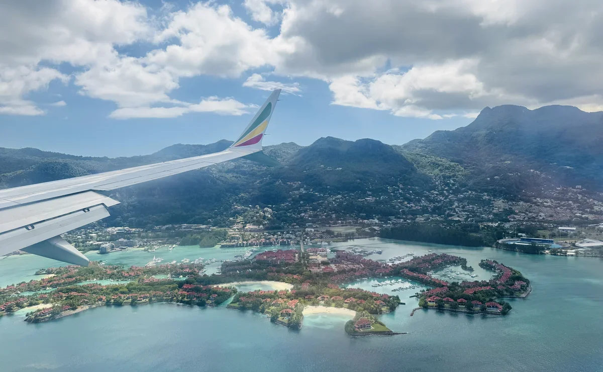 Перелет из Эфиопии на остров Маэ (в столицу Сейшел, город Виктория) часто проходит на полупустом самолете. Можно растянуться на трех креслах, насладиться видом из иллюминатора на безбрежный Индийский океан и увидеть вулканы, а при подлете к Сейшелам открываются захватывающие виды на острова.