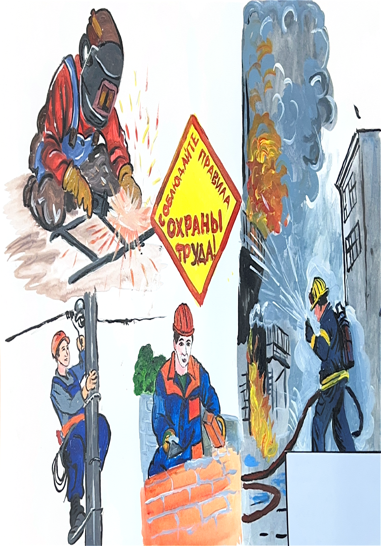 и отражают видение охраны труда в призме детского восприятия. Ребята изобразили труд людей различных профессий с применением специальной одежды и других средств индивидуальной защиты, отразили свои знания требований охраны труда.
