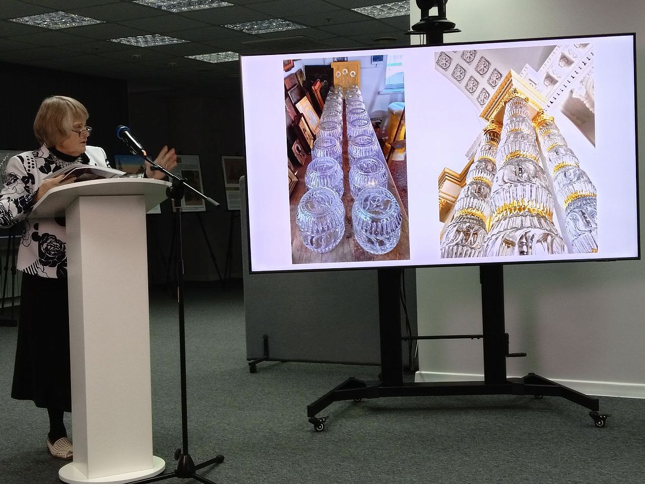 Храм был отреставрирован только в 2011 г. Хрустальный иконостас начали воссоздавать по предложению актива церковного прихода на средства благотворителей. Сейчас восстановлены 2 тумбы с хрустальными колоннами. В 2022 году был запущен проект «Хрустальное чудо Кяхты», который получил поддержку от президентского фонда культурных инициатив. Идёт работа по третьей тумбе. Докладчик показала на слайдах воссоздание иконостаса, освящение первой и второй частей иконостаса с широким привлечением гостей из других регионов, мероприятия по продвижению и команду проекта от Кяхты, Улан-Удэ и Москвы, результаты 2020-2025 гг., источники финансирования. Сказала, что в благотворительности может участвовать каждый неравнодушный человек.