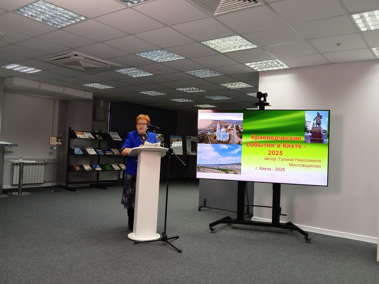 «Краеведческие события 2025 года в Кяхте» осветила в докладе Мостовщикова Галина Николаевна, корреспондент, член Союза журналистов России, член Русского географического общества (г. Кяхта). В этом году прошло несколько значимых мероприятий в преддверии юбилея Кяхты-Троицкосавска в 2027 г. Она рассмотрела и презентовала на многочисленных фотографиях некоторые из них, участником или соучастником которых была.