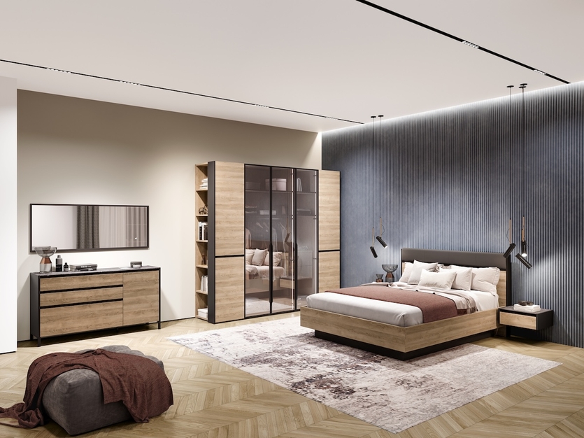 «Парящие» прикроватные тумбы украсили модельный ряд спален. Выполненные в одном стиле с мебелью коллекций, эти элементы помогают сделать интерьер более легким и воздушным, экономят пространство и не препятствуют уборке роботом-пылесосом.