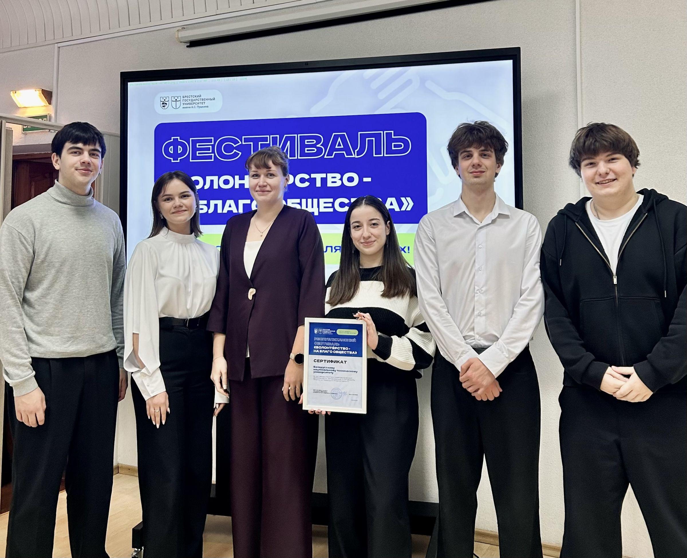 В Бресте11 декабря 2025 годапрошелреспубликанский фестиваль волонтерских отрядов «Волонтерство – на благо общества!». В нем приняли участие представители факультета технологий управления и гуманитаризации (ФТУГ). Делегацию возглавляла заместитель декана по идеологической и воспитательной работе, старший преподаватель кафедры «Менеджмент»Анастасия Жевлакова.