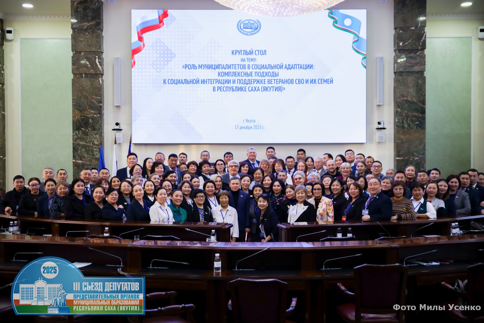 В Якутске, в рамках проведенияIII Съезда депутатов представительных органов муниципальных образований РС(Я),состоялся круглый стол, посвящённый ролям муниципалитетов в социальной адаптации участников специальной военной операции и их семей. Организаторы и участники собрались для обмена опытом, выработки практических механизмов координации и разработки комплексных мер по реабилитации, социальной интеграции и поддержке ветеранов. Модератором мероприятия выступил заместитель Председателя — председатель комитета по делам военнослужащих, ветеранов боевых действий, вопросам патриотического воспитания и общественных организаций Государственного Собрания (Ил Тумэн) РС(Я) Александр Подголов.