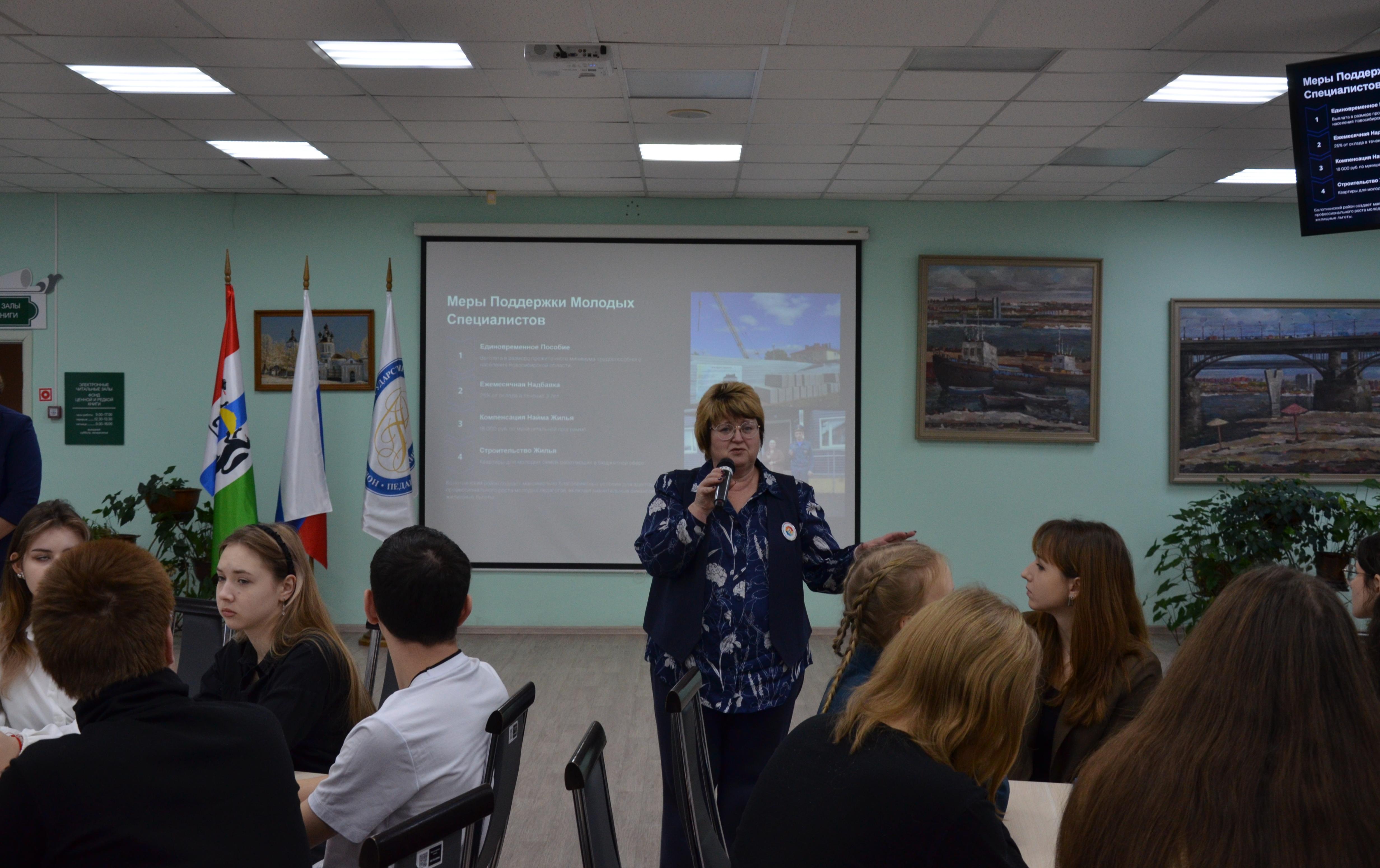 Далее слово взяли начальник Управления образования и молодежной политики Кыштовского района Елена Юрьевна Леоненко и начальник Управления образования и молодежной политики Болотнинского района Елена Александровна Плотникова. Они рассказали студентам о системе образования в районах: школах, детских садах, организациях дополнительного образования, а также мерах поддержки молодых педагогов.