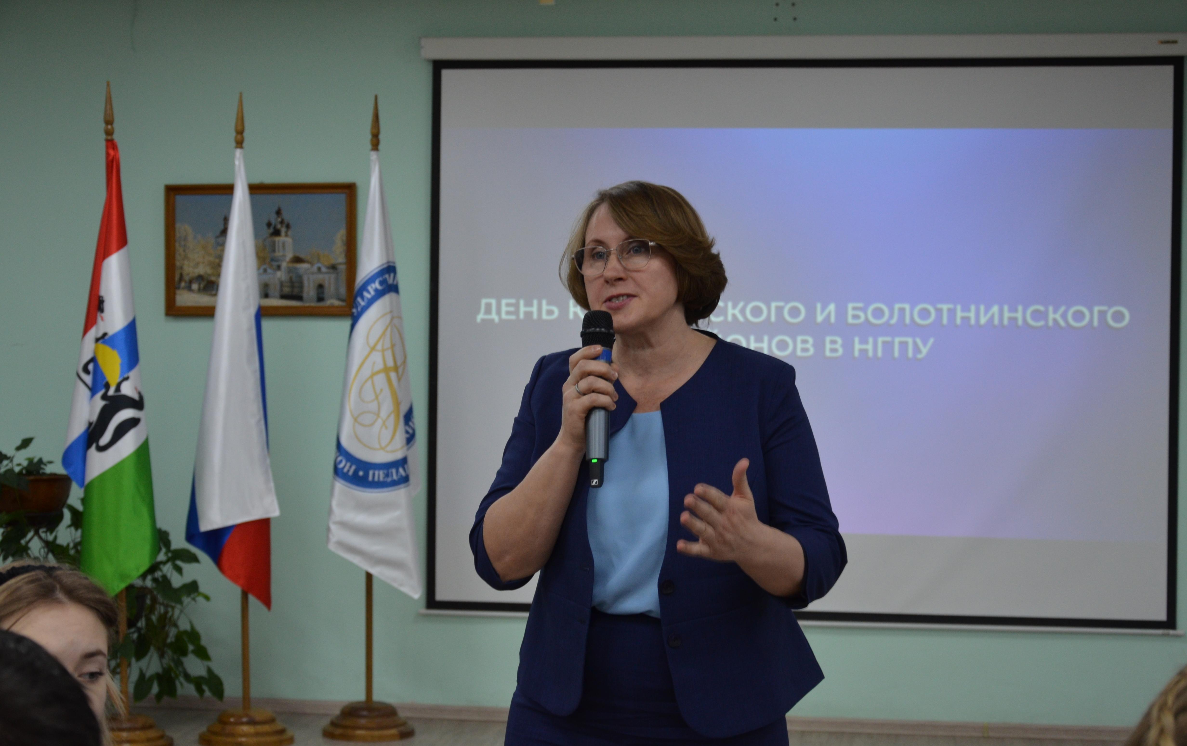 Визит начался со встречи представителей администраций и школ со студентами НГПУ – уроженцами Болотнинского, Кыштовского и других районов Новосибирской области. Гостей вуза и студентов приветствовал проректор по региональному взаимодействию и дополнительному образованию Алексей Дмитриевич Герасёв: он подчеркнул, что главное, в чем сегодня нуждаются образовательные организации районов Новосибирской области – это современные, квалифицированные, энергичные молодые педагоги.