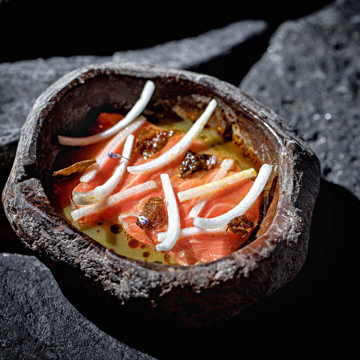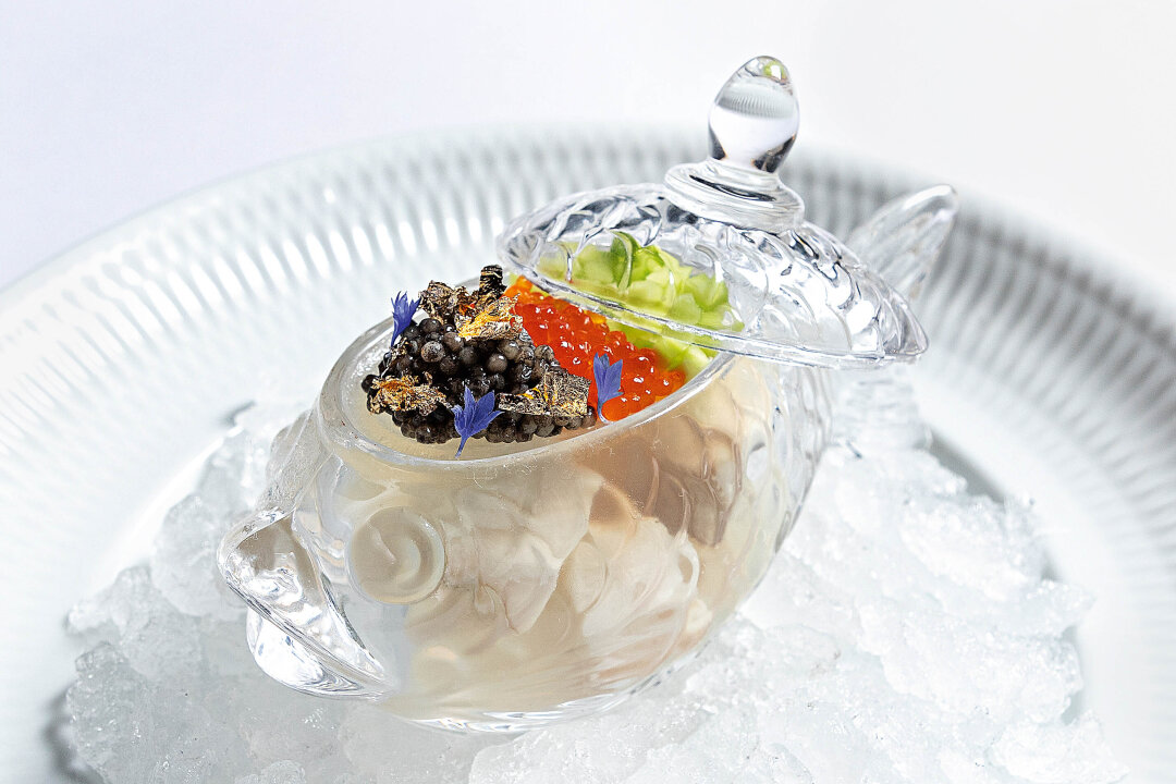 Заливное из стерляди с черной икрой и кремом из хрена от Андрея Жданова