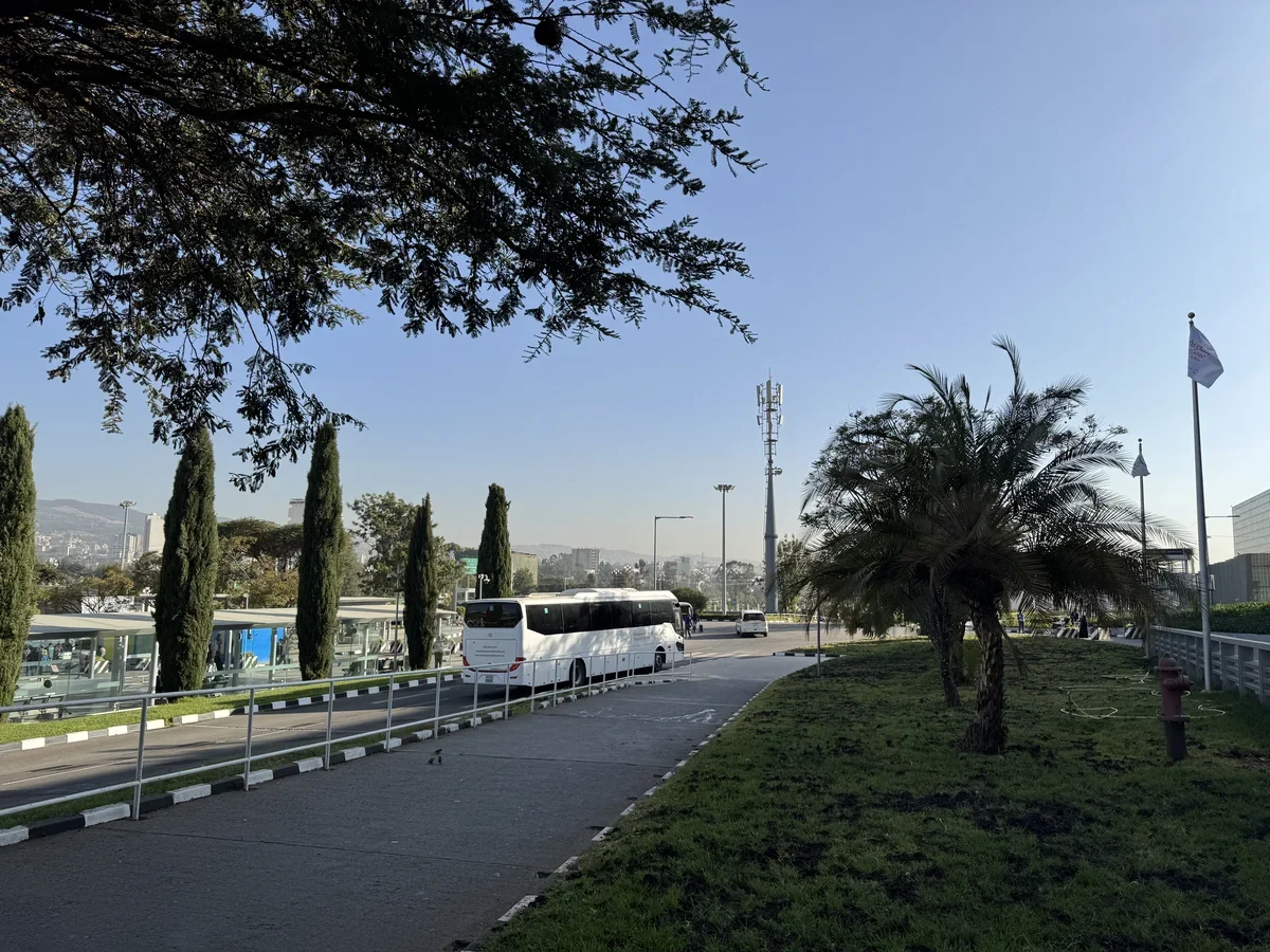 На выходе из аэропорта. Автобус Ethiopian Airlines отправился с туристами. Фото: АТОР