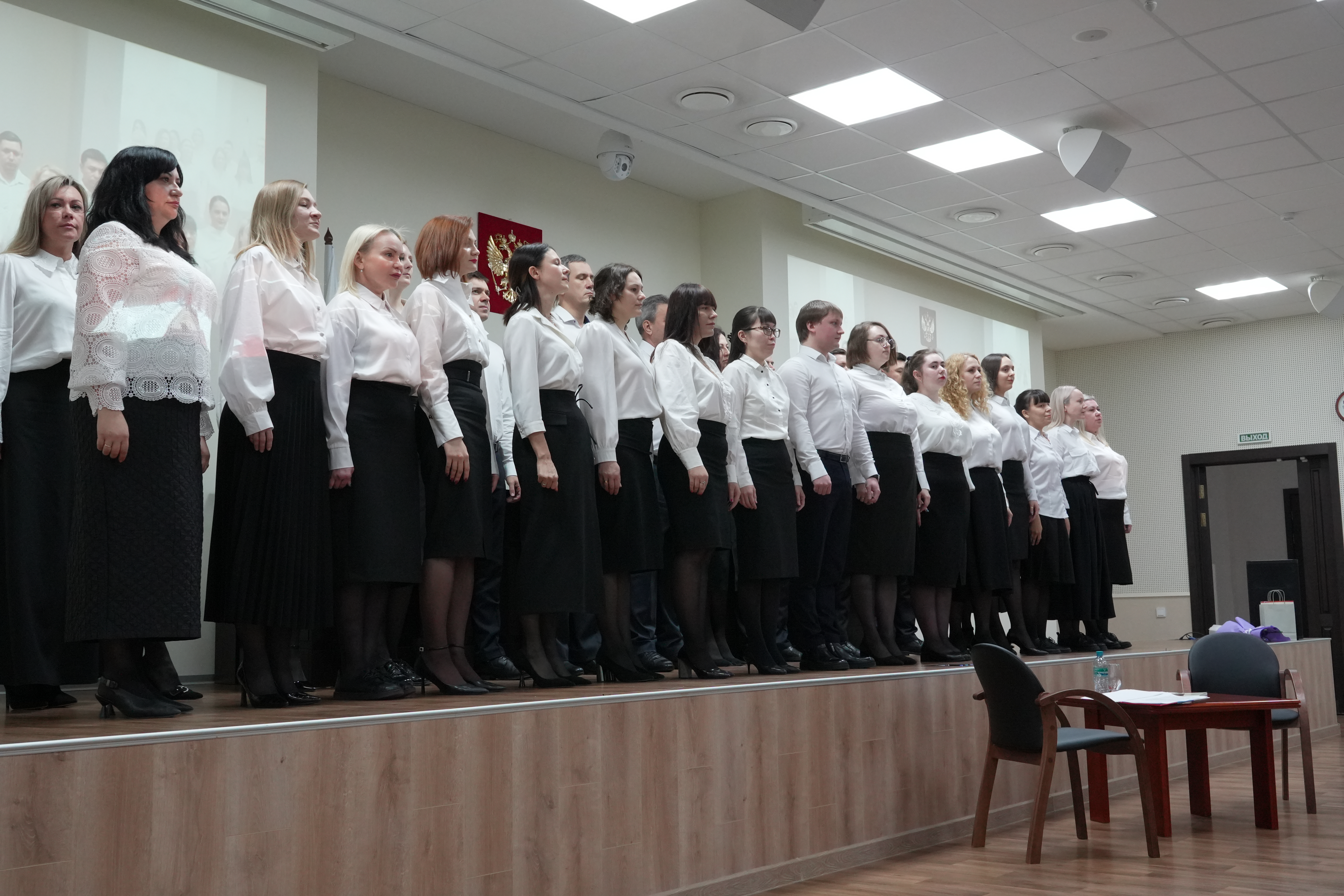 Перед заслуженными юристами России – судьями Омской области также выступил праздничный сводный хор работников судебной системы, от Восьмого арбитражного апелляционного суда в котором приняла участие секретарь судебного заседания Нецикалюк Алина Васильевна.