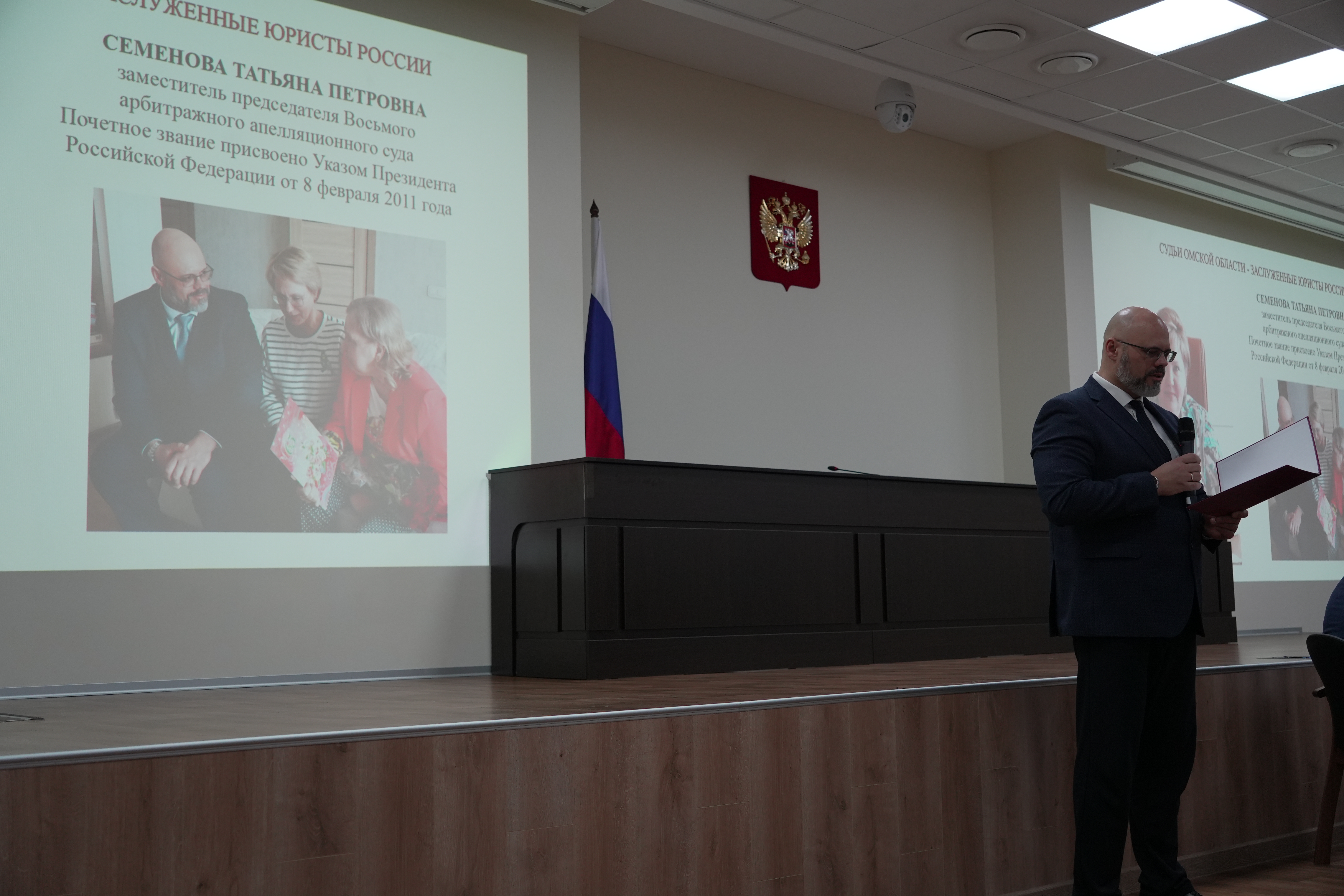 От Восьмого арбитражного апелляционного суда принял участие в означенном мероприятии председатель суда Кливер Евгений Петрович, выступивший со словами благодарности ветеранам системы арбитражных судов области, заслуженным юристам РФ – Людмиле Рафаиловне Литвинцевой и Татьяне Петровне Семеновой.