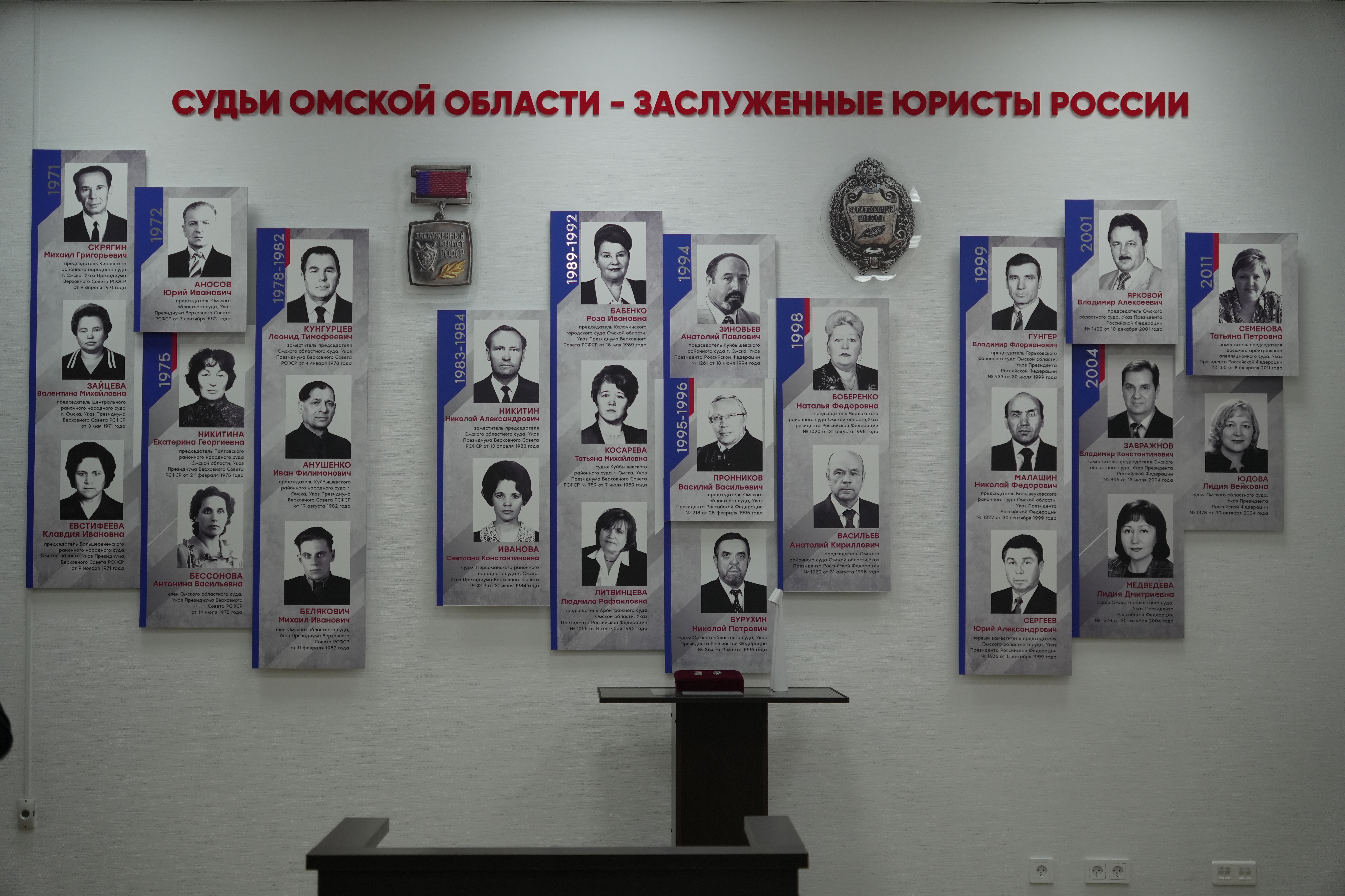Сегодня, 19 декабря 2025 года Омским областным судом, Советом судей Омской области, Омским региональным отделением Российского объединения судей организовано торжественное открытие галереи «Судьи Омской области – заслуженные юристы России», расположенной в здании Омского областного суда.