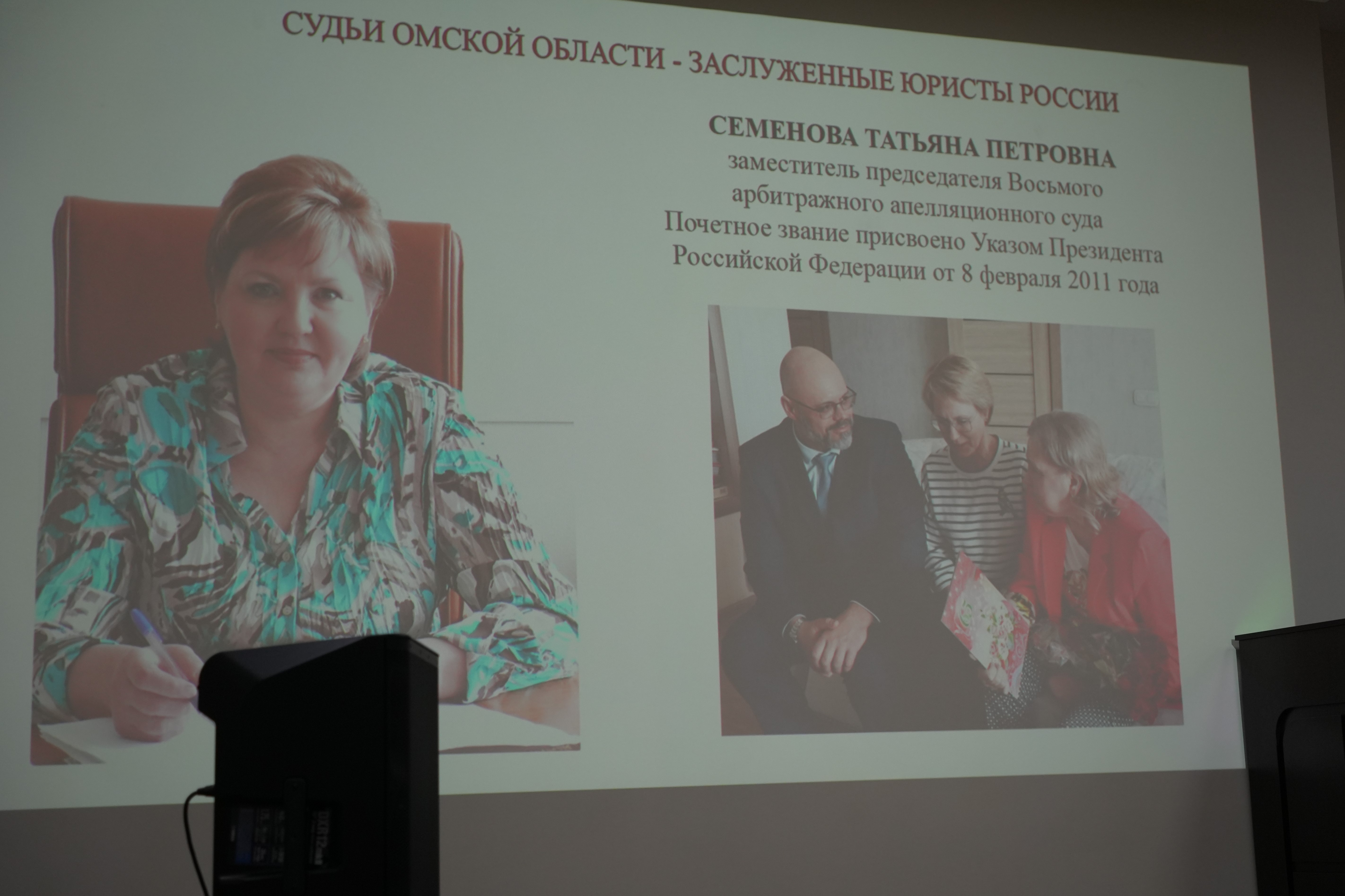 Семёнова Татьяна Петровна имеет стаж работы по юридической профессии 32 года, которые полностью посвятила служению правосудию – с момента окончания ВУЗа (в 1987 год) до 2019 года работала в арбитражной системе Российской Федерации, пройдя путь последовательно от госарбитра до судьи арбитражного суда первой инстанции, председателя судебного состава, председателя коллегии в суде первой инстанции, судьи Восьмого арбитражного апелляционного суда со дня его открытия, затем заместителя председателя этого же суда, и, что немаловажно, по окончании полномочий заместителя председателя апелляционного суда еще 5 лет в качестве судьи до ухода в почетную отставку.
