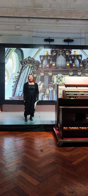 Под сводами зала звучал величественный орган Viscount, унося слушателей сквозь эпохи: от барочной торжественности И.С. Баха, Н. Брунса, Д. Букстехуде и И.Л. Кребса — к страстному романтизму Л. Боэльмана, Э. Жигу, А. Марти, М. Регера и к сочным краскам XX века в музыке Ж. Лангле.
