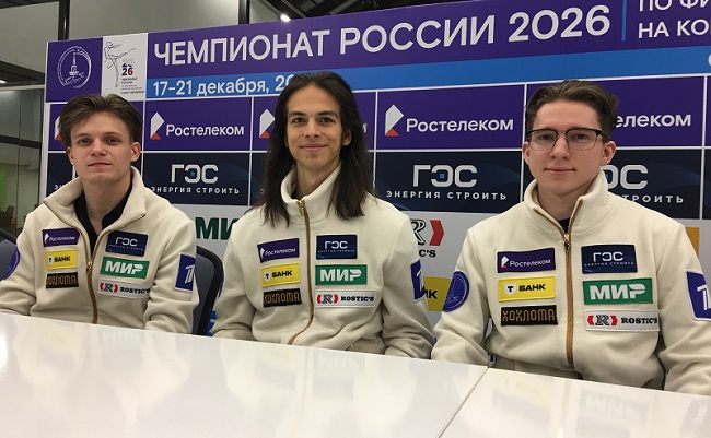 Петр Гуменник выиграл короткую программу на чемпионате России 2026 в Санкт-Петербурге, набрав 103.77 баллов. Евгений Семененко – второй – 100.99 баллов, Андрей Мозалёв – третий – 97.16 баллов.