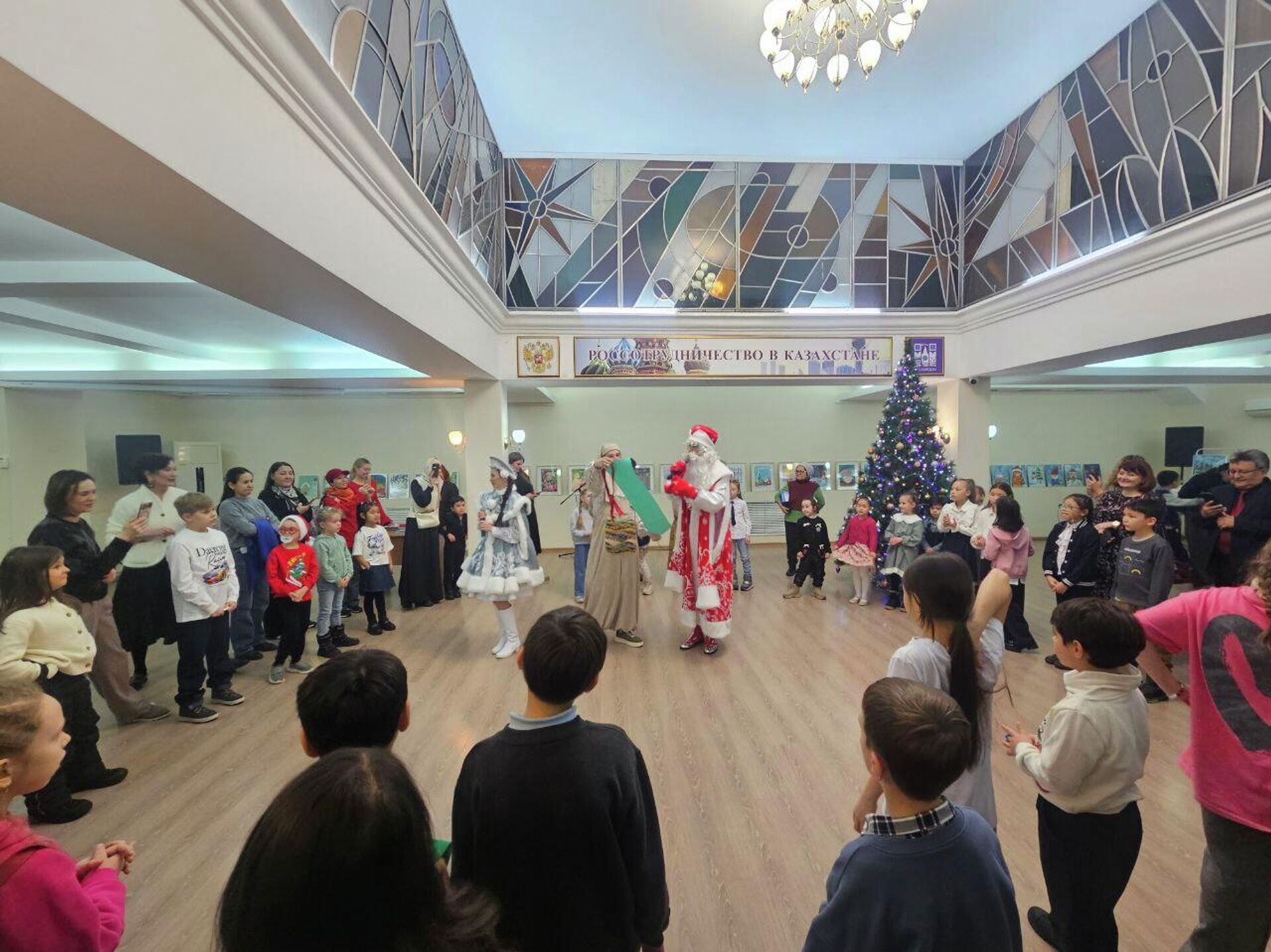 "Более 400 юных казахстанцев погрузились в атмосферу новогодней сказки, встретились с любимыми героями и зарядились праздничным настроением! Московский Дед Мороз поздравил победителей и участников конкурса рисунка "Новогоднее чудо", инициированного Русским домом в Астане", - рассказали в посольстве.