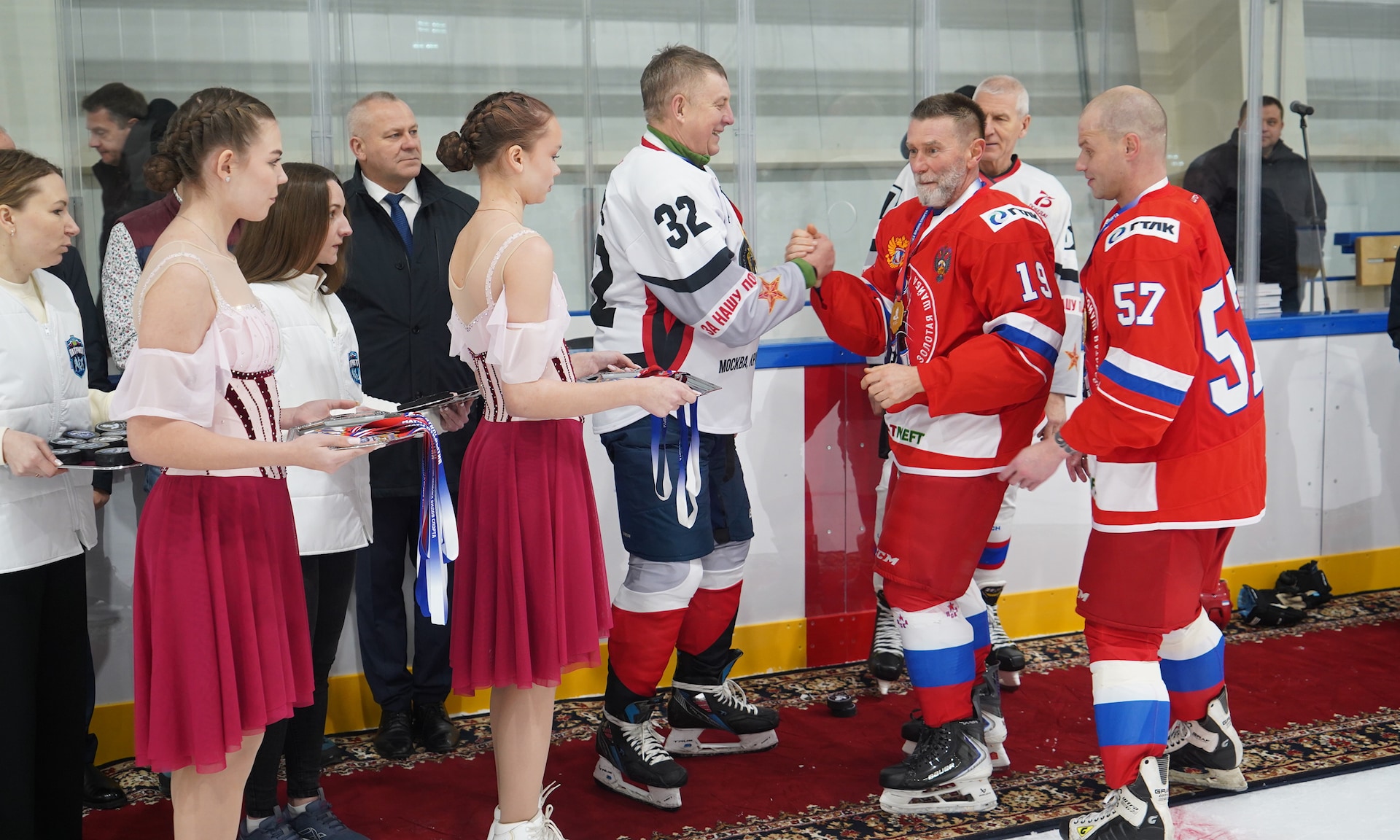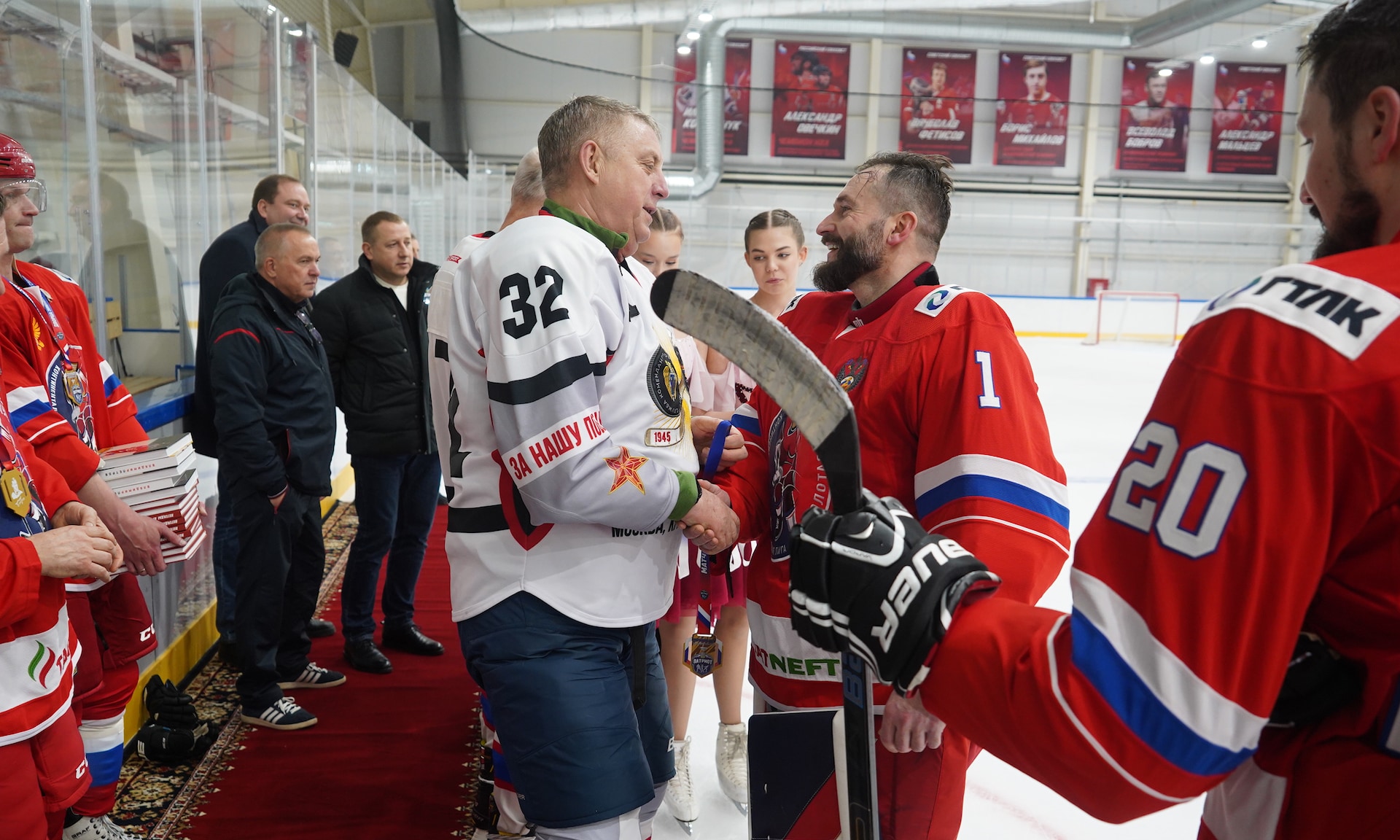Я благодарен нашим ветеранам. Спасибо, что вы своим примером поддерживаете это великое действо, каким является спорт, и показываете пример верности спорту, нашим традициям, отечественному хоккею.