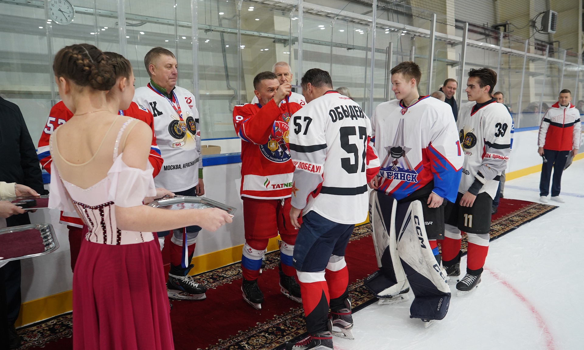 Состоялся хоккейный матч между командой Правительства Брянской области и командой «Золотая шайба. Наставники». Со счетом 7:5 победила команда Брянской области. После завершения ледовых баталий состоялось награждение участников матча.