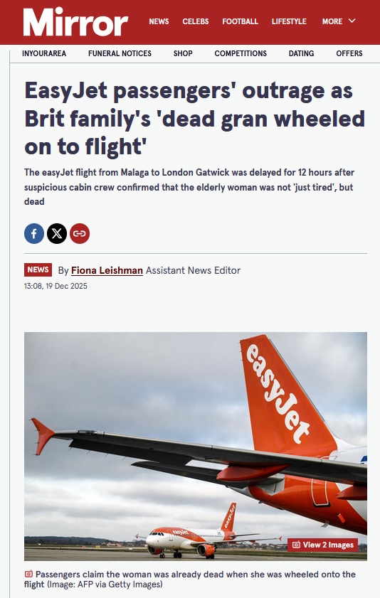 Тем не менее случившееся вызвало сильное возмущение у пассажиров, которые оказались совсем не рады длительной задержке вылета. Многие из них обвиняют британскую семью в попытке сэкономить на транспортировке мёртвой родственницы.