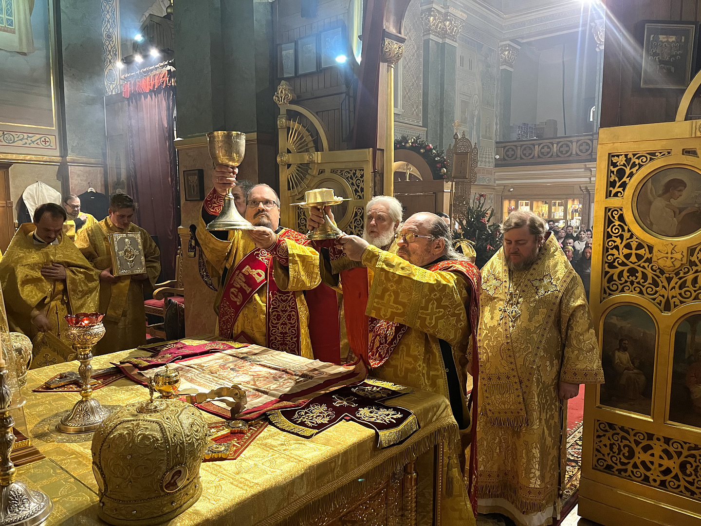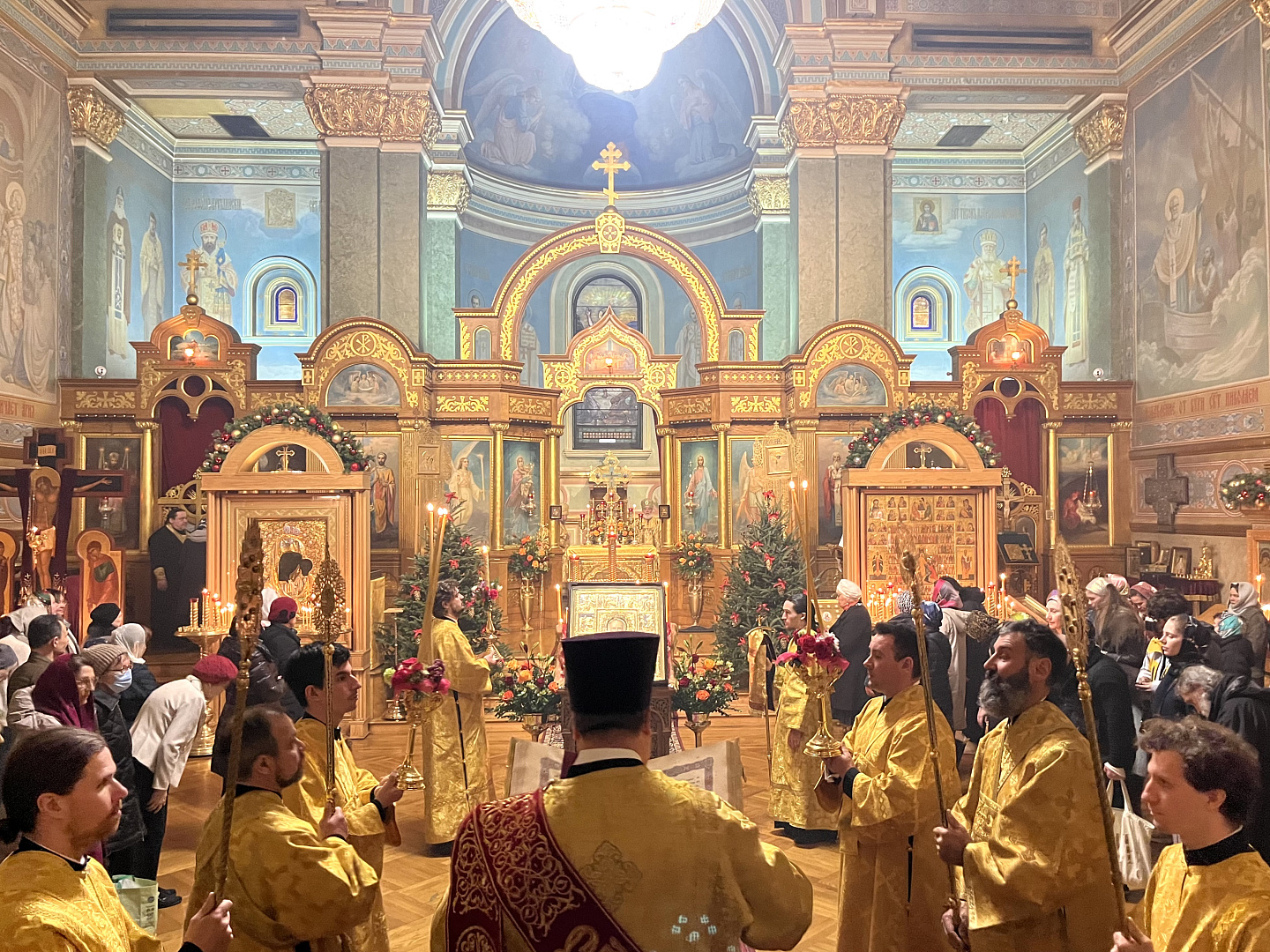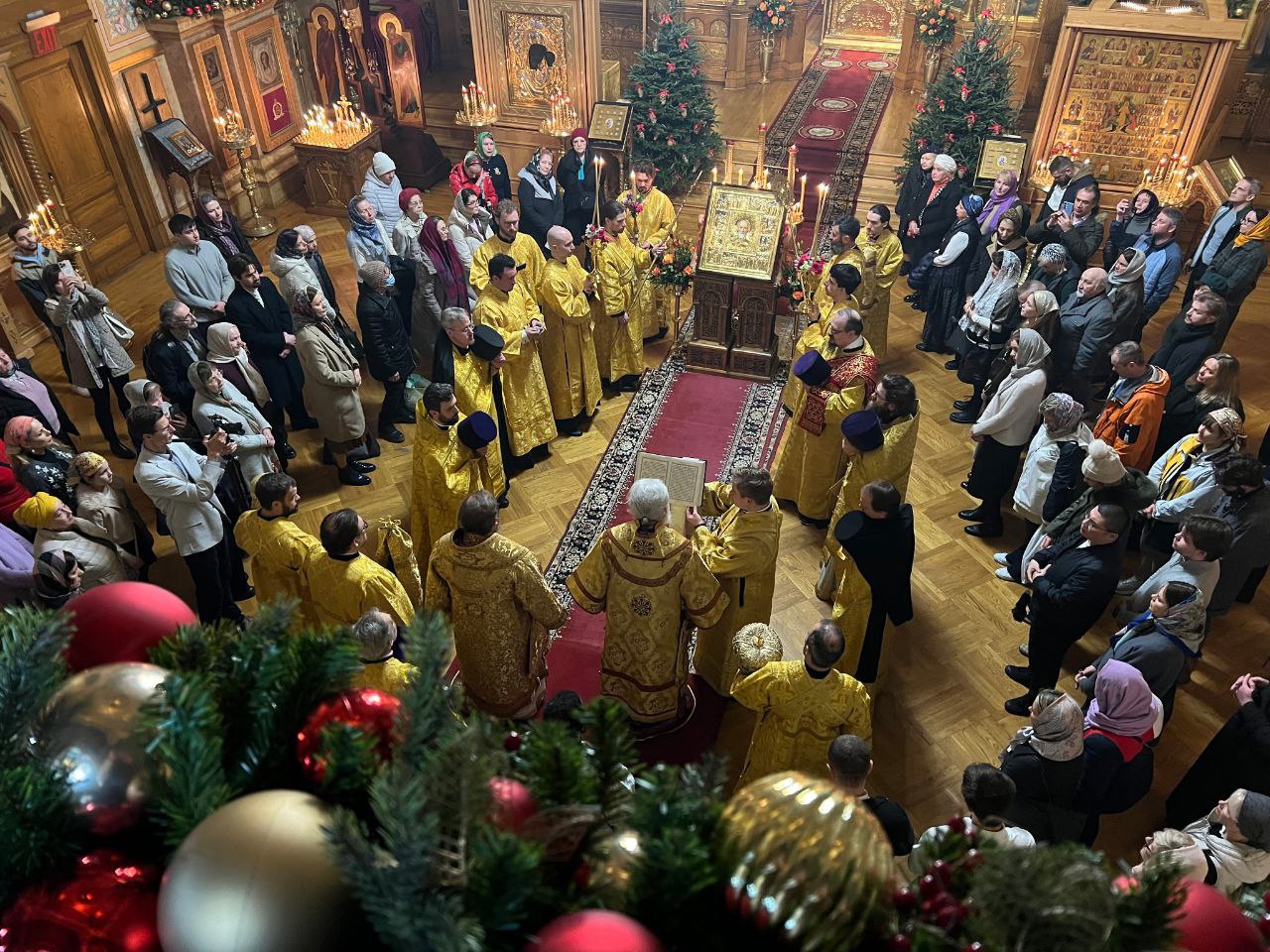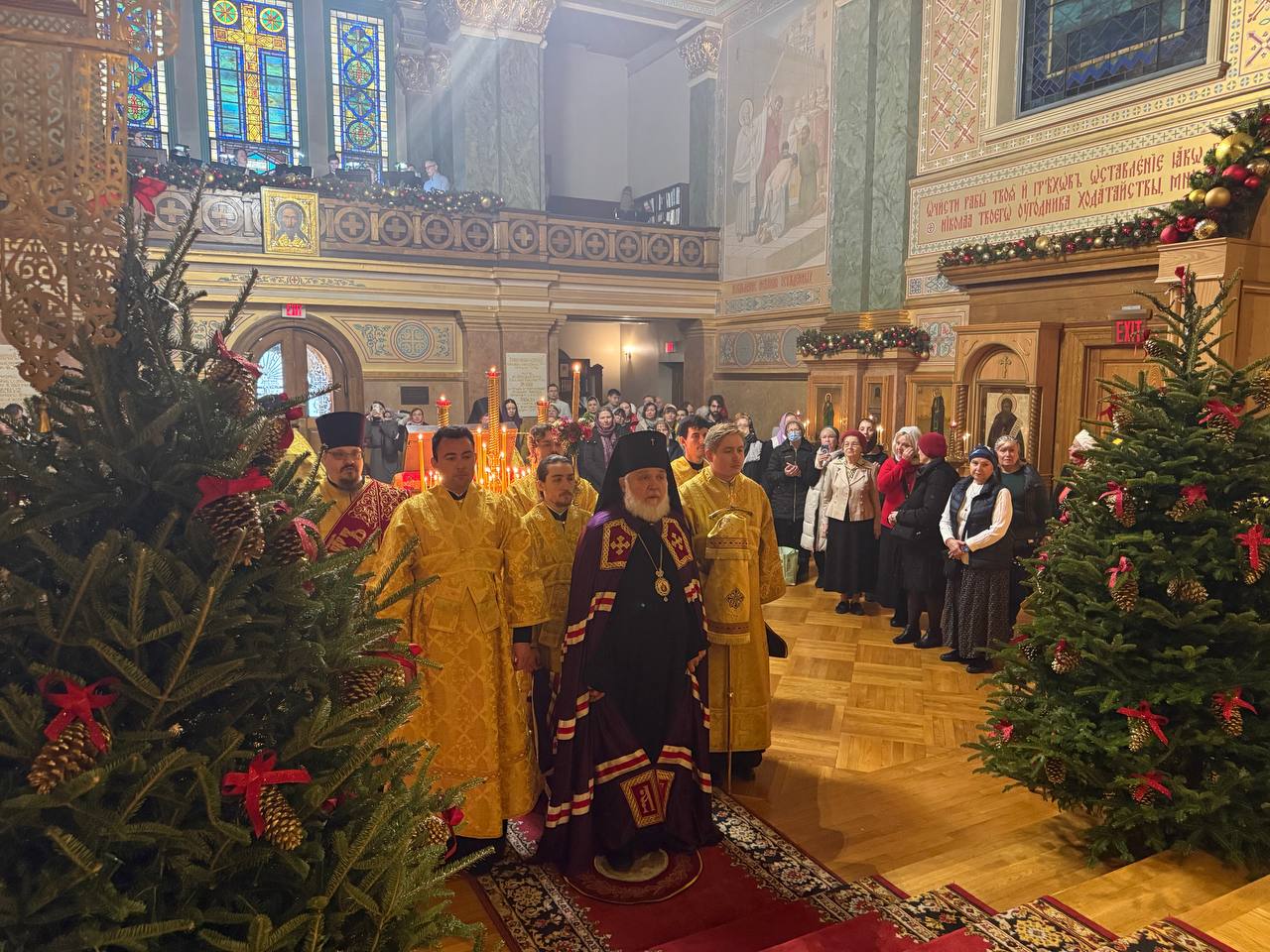 Служба коммуникации ОВЦС, 21.12.2025. 19 декабря 2025 года, в день памяти святителя Николая, архиепископа Мир Ликийских, Чудотворца, в Николаевском Патриаршем кафедральном соборе г. Нью-Йорк праздничную Божественную литургию совершили архиепископ Монреальский и Канадский Гавриил и временно Управляющий Патриаршими приходами в США и Канаде епископ Сурожский Матфей.