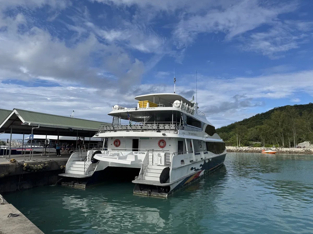 Паром, который доставляет туристов с Праслина на Ла Диг. Фото: АТОР