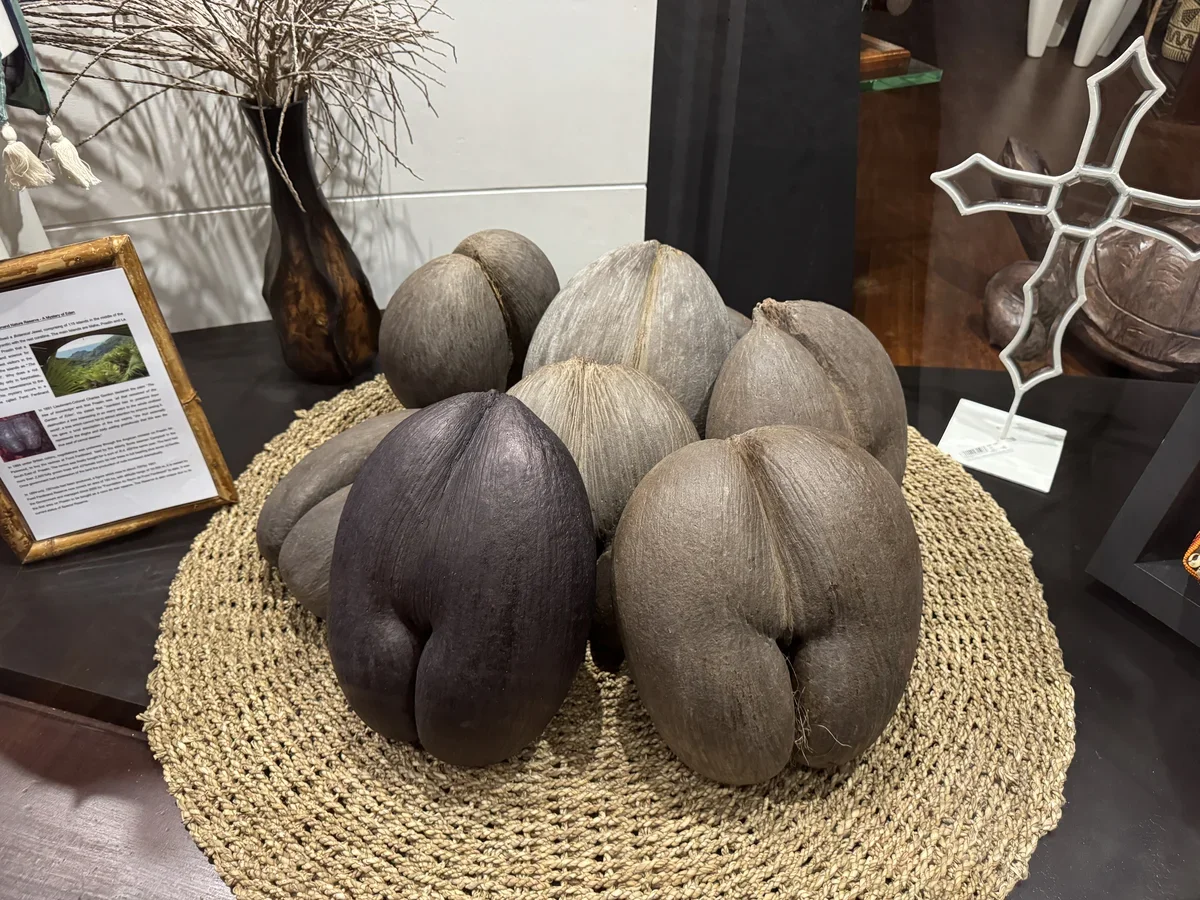 Коко-де-мер (морской орех) – гордость Сейшел и один из популярных сувениров. Чем красивее его форма, тем он дороже. Цены начинаются от 300 евро за штуку. Для вывоза ореха за границу нужен специальный сертификат.