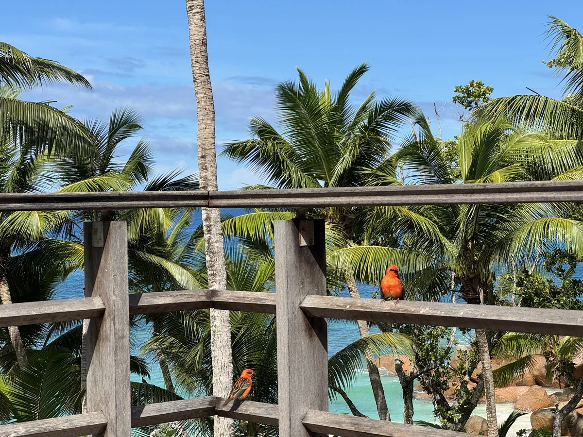 Яркие птички на территории отеля Constance Lemuria Seychelles 5*, Сейшелы. Фото: АТОР