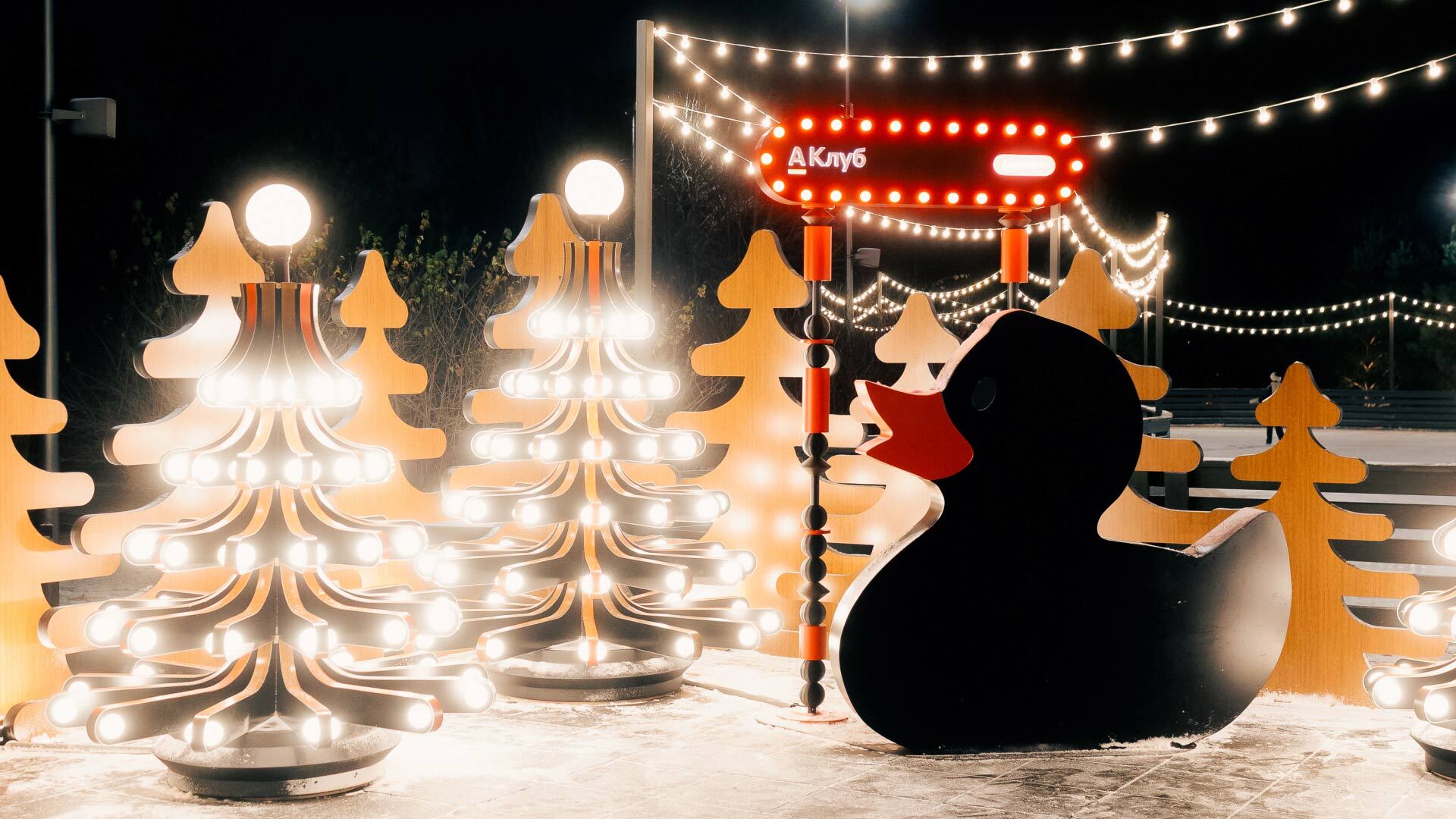 Пространство The Rink уже зарекомендовало себя как одна из популярных зимних локаций, куда приезжают за атмосферой и ощущением отпуска. Лаундж А-Клуба станет центральным элементом локации. В нем разместят новогоднюю инсталляцию с маскотом сообщества — черной уточкой, а также зону отдыха с шезлонгами, фотобудку и «почту Деда Мороза». Для посетителей предусмотрено специальное сезонное меню.