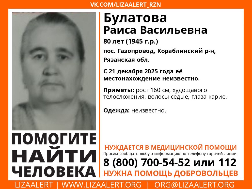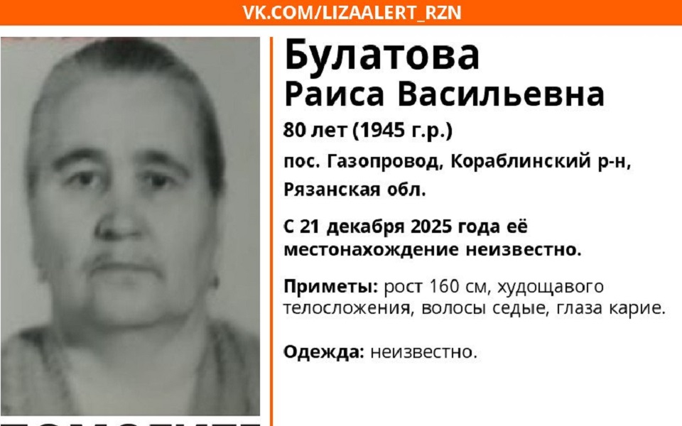 Отряд «ЛизаАлерт – Рязань» объявил розыск.